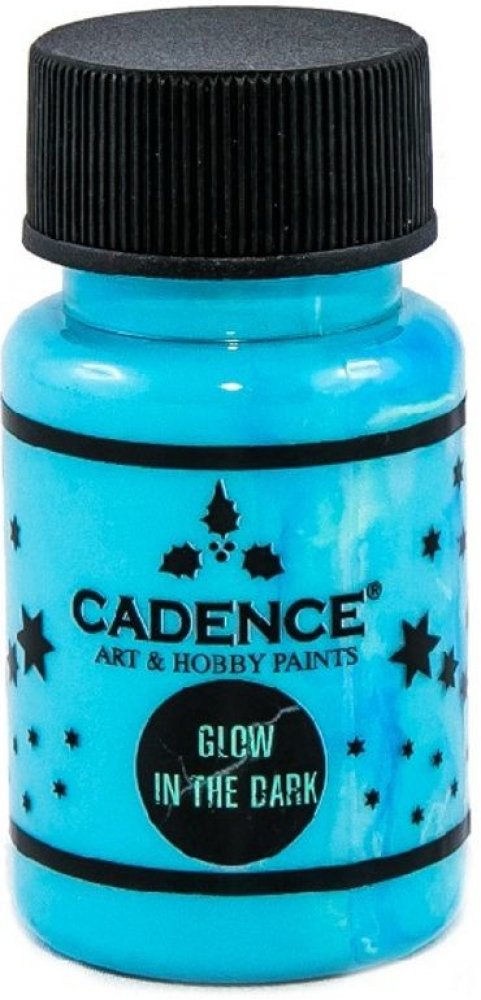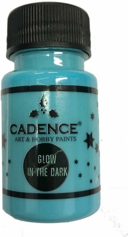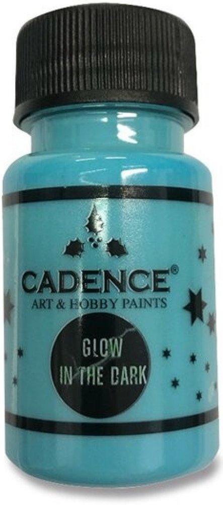 Akrylové barvy turecké značky Cadence Glow in dark jsou gelové lehce krycí barvy, které po nasvícení svítí ve tmě. Vhodné na dekorační účely. Barvy svítí a září ve tmě, tento úžasný efekt ocení zejména děti. Svítící efekt se dostaví až za úplné tmy. Lépe barva ve tmě svítí, pokud se předem vystaví prudkému světlu. Svítící efekt se ve tmě po chvíli vytrácí, v tomto případě, je vhodné znovu nasvítit. Baleno plastové průhledné lahvičce se šroubovacím víčkem.