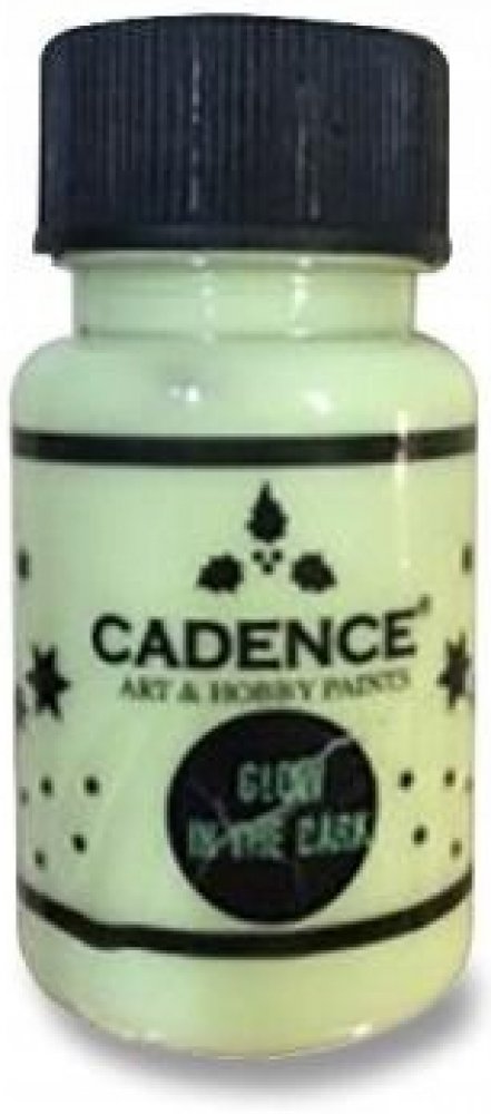 Akrylové barvy turecké značky Cadence Glow in dark jsou gelové lehce krycí barvy, které po nasvícení svítí ve tmě. Vhodné na dekorační účely. Barvy svítí a září ve tmě, tento úžasný efekt ocení zejména děti. Svítící efekt se dostaví až za úplné tmy. Lépe barva ve tmě svítí, pokud se předem vystaví prudkému světlu. Svítící efekt se ve tmě po chvíli vytrácí, v tomto případě, je vhodné znovu nasvítit. Baleno plastové průhledné lahvičce se šroubovacím víčkem.