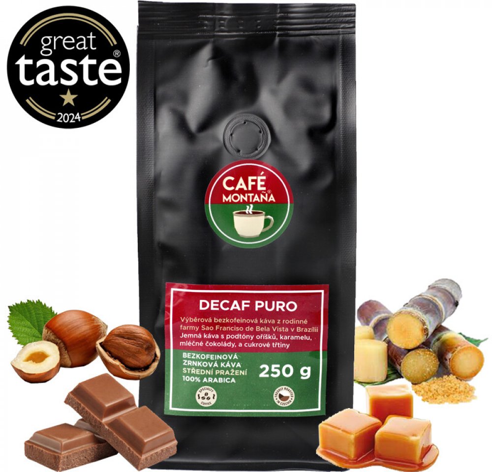 Bezkofeinová káva Decaf Puro získala v Anglii prestižní ocenění Great Taste 2024. Čím si tato káva získala nezávislou porotu? Hodnotící komisař ji popsal těmito slovy: