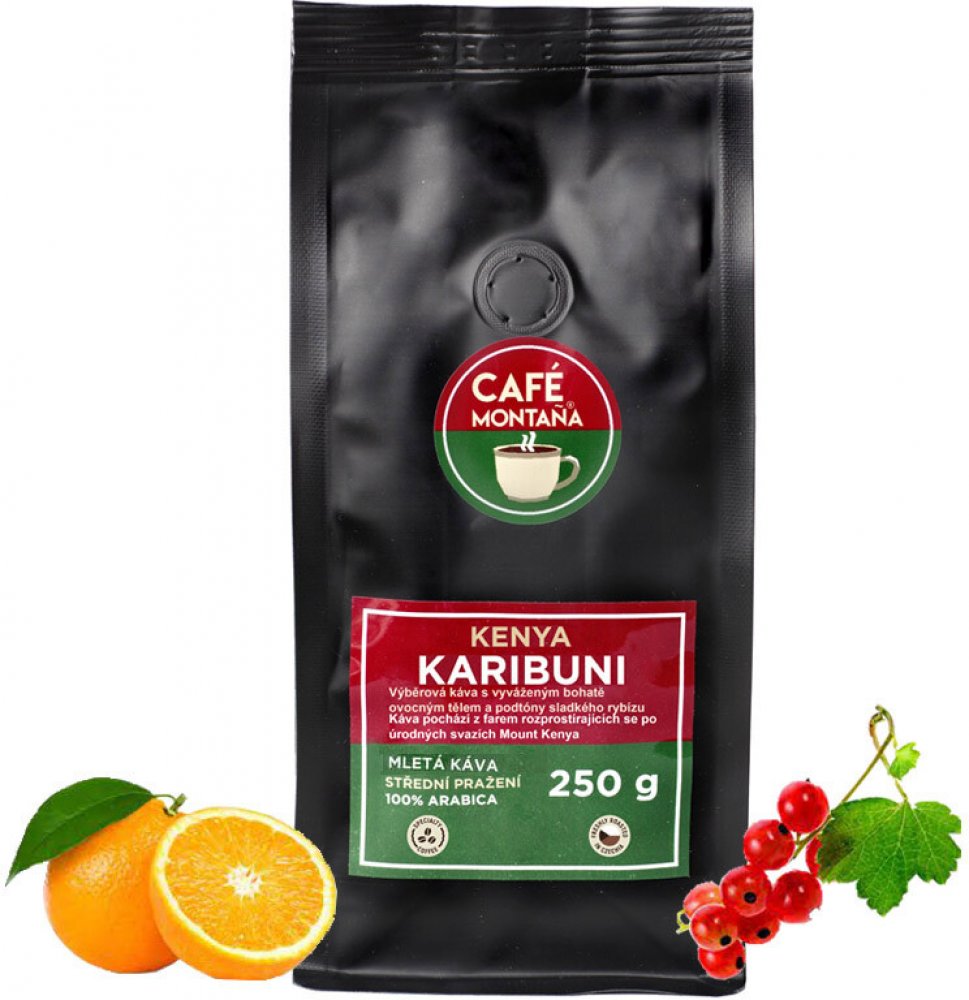 Café Montaña Kenya Karibuni mletá káva Moka konvička 1 kg