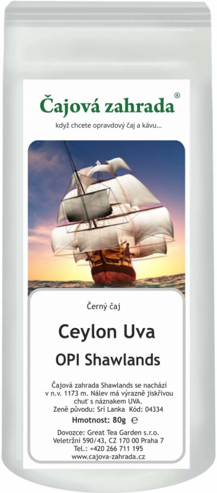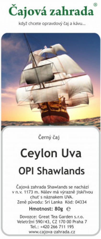 Ceylonské čaje - Šrí Lanka Ostrov je v půli rozdělen hornatým masivem, dosahujícím až 2300 m. Ten způsobuje zvláštní klimatické podmínky, takže zde jsou dvě "flavoury seasons" se slunným, suchým a větrným počasím v roce, což zpomaluje růst čajovníků a vytváří podmínky pro vznik aromatických látek. Na jihozápadních svazích hor (Dimbula) je to v lednu až březnu, kdy navíc noční teploty klesají značně nízko, zatímco v severovýchodní části masivu (Uva) je to zhruba v červnu až srpnu. V těchto měsících vždy na opačné straně hor vrcholí doba dešťů. Uprostřed hor se rozkládá hornatá pláň s centrem Nuwara Eliya s výškami okolo 2000 m, kde je nejlepší sezóna v lednu až dubnu, ale sklizeň pokračuje po celý rok. Další centra pěstování čaje se nachází v horách okolo města Kandy ve výškách okolo 1000 m a v nížinách mezi městy Ratnapurou a Galle. Černý čaj jeho historie a zpracování Černý čaj (občas také zvaný červený čaj) - přestože tyto plně fermentované čaje nejsou v Číně příliš oblíbeny, jejich hlavní druhy jsou mistrovskými díly. I levnější sorty nás příjemně překvapí pěkným vzhledem, svědčícím o dokonale provedené sklizni a zpracování čaje. Některé čaje z této skupiny se vyrábějí pouhých padesát let (např. čaj Yunnan) zatímco jiné jsou známy od 17. století. Nicméně je nutno předpokládat, že tento typ čaje je Číňanům znám přinejmenším stejně dlouho jako vícenásobně fermentované čaje typu Pu Erh, (tj. zhruba od 7. století n. l.), ale patrně jim příliš nelahodil. Černý čaj je, jak již bylo zmíněno, fermentovaný a oolong je polo-fermentovaný. Po sklizni se listy nechají „zvadnout“, tedy částečně usušit, a to podle stylu buď na slunci, nebo ve stínu. Pokud lístky nejsou částečně vysušeny, nelze je svinout. Enzymatické procesy probíhají pravé během tohoto vadnutí. Nejlepší čaje jsou proto ty, u kterých vadnutí proběhne díky suchému počasí během několika hodin. „Deštivé čaje“, které vadnou pomaleji, nejsou tak oblíbené. Když jsou svinuty, jsou čajové lístky rozprostřeny na vlhkém a studeném místě k fermentaci, tedy k další oxidaci. Účinky obou fází oxidace se od sebe výrazně liší. Patrně proto, že po svinutí jsou oxidaci vystaveny i další složky listů, například esenciální oleje. Právě proto nesmí být lístky určené k výrobě černého čaje či oolongu před svinutím "usmrceny", jako je tomu v případě lístků určených pro čaj zelený. Složení a popis čaje - Ingredients and description of Tea English Ceylon OPI “Shawlands” The Shawlands tea estate is located at an altitude of 1,173 mts. above sea level with a tea growing area of approx. 295 hectares. Tangy tea straight from the uva district. Italiono Ceylon OPI “Shawlands” Tè frizzante dalla regione di Uva. La piantagione si trova a 1.173 m di altitudine nel distretto di Uva ed ha una superficie di ca 295 ha. Deutsch Ceylon OPI “Shawlands” Spritziger Tee aus der Uva-Region. Die Shawlands Teeplantage liegt auf einer Höhe von 1.173 m über dem Meeresspiegel und hat eine Teeanbaufläche von ca. 295 Hektar. Français Ceylon OPI “Shawlands” Un thé pétillant provenant de la région d’Uva. La plantation de thé des Shawlands se trouve à une altitude de 1.173 m au dessus de la mer dans le district d’Uva et a une surface de culture du thé d’env. 295 ha.