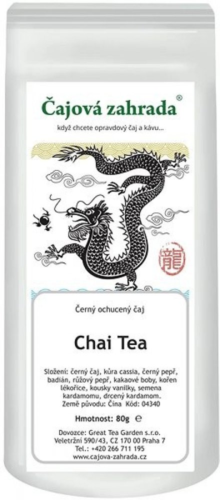 Čajová zahrada Chai Tea - ajurvédský černý čajsypaný, 80 g Čajová zahrada Chai Tea - ajurvédský černý čajChai Tea od značky Čajová zahrada je výrazný ajurvédský čaj, který spojuje prvotřídní černý čaj s bohatou směsí exotického koření. Nabízí hřejivou, lehce pikantní chuť a přirozeně povzbuzující charakter díky obsahu kofeinu. Tento tradiční chai je ideální volbou pro chladné dny, ranní start i chvíle, kdy hledáte silnější alternativu ke kávě. Intenzivní aroma pepře, kardamomu, skořice a vanilky vytváří hluboký chuťový zážitek, který si zamilují milovníci kořeněných čajů. SloženíČerný čaj, kůra cassia, černý pepř, badyán, růžový pepř, kousky kakaových bobů, kořen lékořice, kousky vanilky, kardamon - celá semena, drcený kardamon. PřípravaJednu čajovou lžičku čaje zalijte 250 ml horké vody o teplotě přibližně 95 °C. Nechte louhovat 3–5 minut podle požadované síly. Pro tradiční chai variantu lze čaj připravit také s mlékem. SkladováníSkladujte v suchu při teplotě do 25 °C mimo dosah...