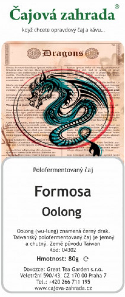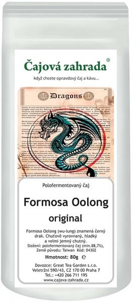 Čajová zahrada Formosa Oolongzelený a oolong, sypaný, 80 g Čajová zahrada Formosa OolongFormosa Oolong (wu-lung) znamená černý drak. Když portugalští mořeplavci objevili Taiwan, zvolali podle jedné z legend slovo „Formosa,“ tedy krásný. A přesně tak by se dal charakterizovat i tento oolong, který mnoho odborníků řadí mezi nejlepší polofermentované čaje světa. Těšit se můžete na úžasně chutný čaj s...