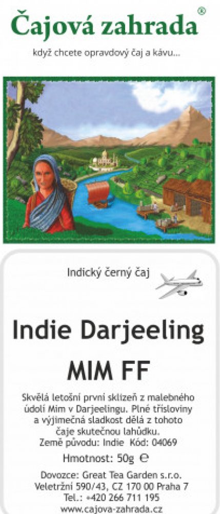 Čaj Čajová zahrada India Darjeeling Mim FFsypaný černý čaj, 500 g Čaj Čajová zahrada India Darjeeling Mim FFIndia Darjeeling Mim FF (FTGFOP1) je výtečný indický černý čaj z letošní první sklizně. Tento velmi aromatický čaj patřící mezi oblíbené druhy čaje má jasný zlatožlutý nálev a plnou, sametovou chuť se zřetelnými sladkými tóny. Dopřejte si chvilku pohody s šálkem výjimečně sladkého a na třísl...