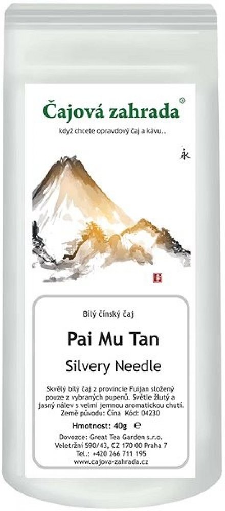 Nepohrdnete šálkem dobrého čaje a rádi si jej vychutnáte v klidu domova? V tom případě si vaši pozornost zaslouží čaj Čajová zahrada. Bílé čaje mají nálepku velmi ceněného druhu. Produkuje ho zejména Čína. Dříve bylo jeho pití výsadou několika vyvolených u císařského dvora. Jejich jedinečnost spočívá ve sběru velmi mladých čajových pupenů - čas na sběr je omezený pouze na začátek jara, pokud je příznivé počasí. Další krok se nazývá nazývá zavadnutí lístků, při kterém se odpařuje přebytečná voda. Hlavním rozdílem od jiných druhů čajů je ten, že se lístky bílého čaje nesvinují. Proces zavadnutí je krátký, hned po něm následuje sušení při nízké teplotě. Každý si hned bílý čaj zamiluje díky jeho jemné a lehce nasládlé chuti. Je sypaný, jen na vás tak záleží, kolik čaje budete louhovat. Čaj Čajová zahrada se dodává v balení po jednom kusu o celkové hmotnosti 500 g. Čaj Čajová zahrada je dodáván v balení po jednom kusu s celkovou hmotností 500 g. Hlavní vlastnosti čaje Čajová zahrada Pai Mu Tan Silvery Needle...