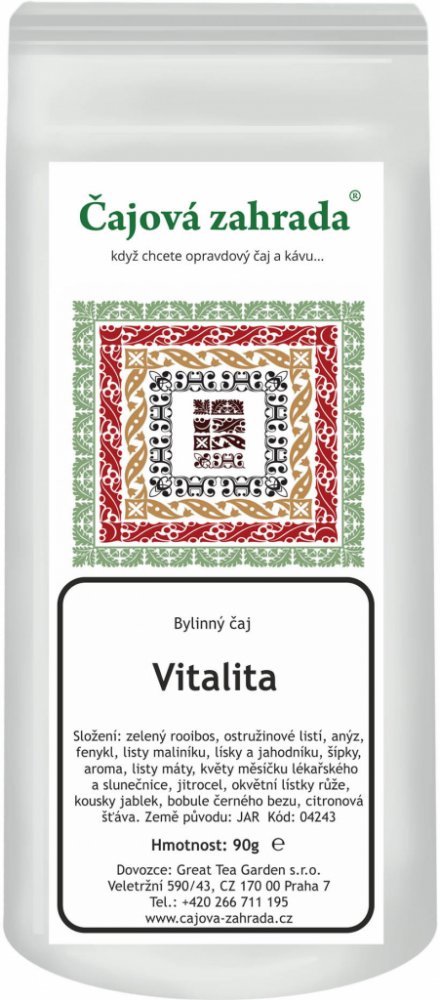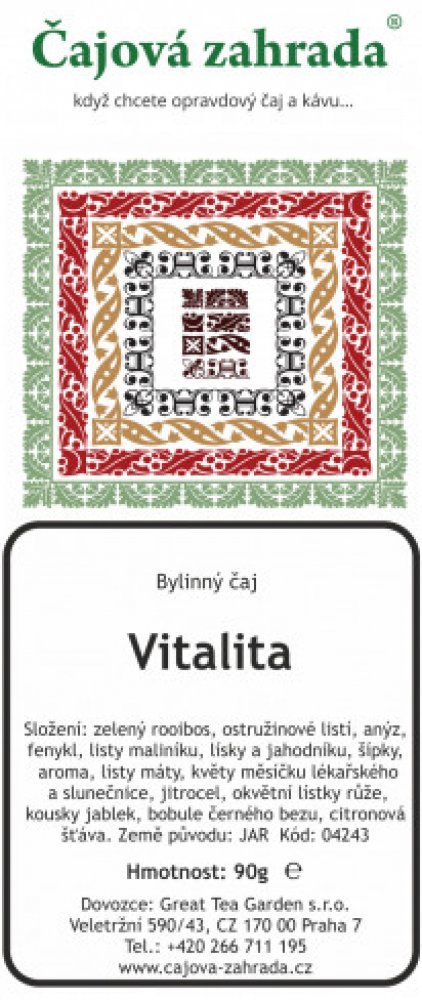 Rooibos čaj Je to vytrvalá rostlina s jemně jehličkovitými listy, dorůstající výšky 1 metru. Původem z cedarbergské oblasti v západo-kapské části Jižní Afriky. Předmětem použití je nať, sbíraná odřezáváním asi 35cm nad zemí (Herba aspalathi - Rooibos). Čaj se fermentuje, podobně jako černý čaj (nebo červený). Čaj Rooibos obsahuje kvalitní třísloviny (4,5 až 6% proti 8 až 15% v černém čaji) a velké množství stopových prvků a minerálů - železo, měď, zinek, hořčík, mangan, draslík, vápník, fluor, molybden a další. Dále nacházíme látku zvláštní chemické povahy, zvanou aspalathin, velké množství flavonoidů, organické kyseliny, vitamin C a řadu jiných látek, jejichž výzkumy pokračujou. Rooibos je svou působností na rozmezí mezi produkty potravinářskými a léčivými. Nejsou známy žádné kontraindikace ani vážnější nežádoucí účinky po jejím podání. Proto je vhodná i pro děti, těhotné a kojící ženy. Neobsahuje kofein ani jeho deriváty. Historie Rooibosu Historie čajovníkovce Rooibos začíná rokem 1804, kdy Žid Benjamin Ginsberg přesvědčil kapské Búry, aby sbírali nať divoce rostoucích bylin. Později je začali pěstovat. Původní "technologie" sběru, sušení a přípravy čajovníku pochází od jihoafrických domorodců, zřejmě přímo od Masajů. První sklizeň se provádí druhým rokem. Čajová surovina je po sběru podrobena fermentaci a poté je pasterizována. Čaj je oblíben v USA, Německu, Švýcarsku a v poslední době pronikl dokonce také do Japonska. Složení a popis čaje - Ingredients and description of Tea English Vitaknall Ingredients: Green Rooibos, blackberry leaves, aniseed, fennel, ras- pberry leaves, strawberry leaves, rose hips, hazelnut leaves, flavour, peppermint leaves, marigold flowers, sunflowers, ribwort, rose pe- tals, apple pieces, danewort berries, lemon balm. Vital elderberry- mango-taste Italiono Vitaknall Ingredienti: Rooibos verde, foglie di mora, anice, finocchio, foglie di lampone, foglie di fragola, bucce di cinorrodo , foglie di nocciola, aroma, foglie di menta piperita, fiori di calendula, fiori di girasole, Plantago lanceolata, rose, pezzi di mela, bacche di sambuchella, fog- lie di melissa. Gusto vitale di coccola di sambuco e mango. Deutsch Vitaknall Zutaten: Grüner Rooibos, Brombeerblätter, Anis, Fenchel, Himbeer- blätter, Erdbeerblätter, Hagebuttenschalen, Haselnussblätter, Aro- ma, Pfefferminzblätter, Ringelblumenblüten, Sonnenblumenblüten, Spitzwegerich, Rosenblüten, Apfelstücke, Attichbeeren, Melissen- blätter. Vitaler Fliederbeer-Mango-Geschmack. Français Vitaknall Ingrédients: Rooibos vert, pétales de mûre, anis, fenouil, pétales de framboises, pétales de fraises, pelures d‘églantine, pétales de noisettes, arôme, pétales de menthe, pétales de souci, pétales de tournesol, plantain, pétales de rose, morceaux de pommes, baies d’attique, pétales de mélisse. Goût vitale de baies de sureau et de mangue. Příprava Roibosu - z plantáže až do Vašeho šálku