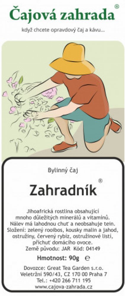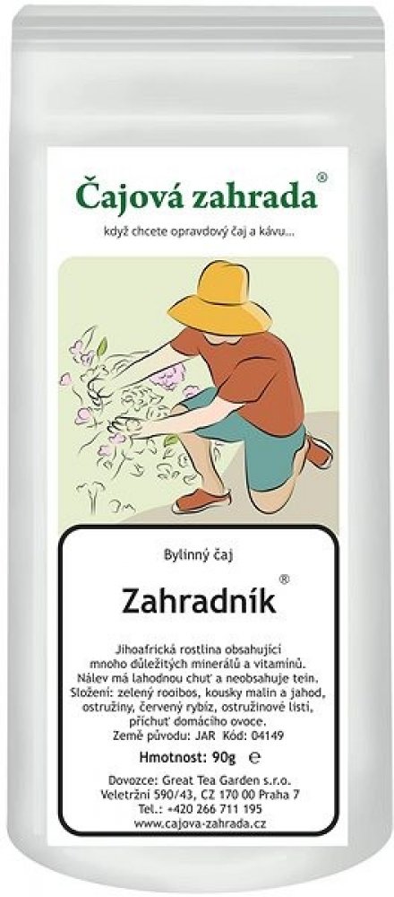 ® patentově chráněná obchodní značka společnosti Great Tea Garden s.r.o. Rooibos čaj Je to vytrvalá rostlina s jemně jehličkovitými listy, dorůstající výšky 1 metru. Původem z cedarbergské oblasti v západo-kapské části Jižní Afriky. Předmětem použití je nať, sbíraná odřezáváním asi 35cm nad zemí (Herba aspalathi - Rooibos). Čaj se fermentuje, podobně jako černý čaj (nebo červený). Čaj Rooibos obsahuje kvalitní třísloviny (4,5 až 6% proti 8 až 15% v černém čaji) a velké množství stopových prvků a minerálů - železo, měď, zinek, hořčík, mangan, draslík, vápník, fluor, molybden a další. Dále nacházíme látku zvláštní chemické povahy, zvanou aspalathin, velké množství flavonoidů, organické kyseliny, vitamin C a řadu jiných látek, jejichž výzkumy pokračujou. Rooibos je svou působností na rozmezí mezi produkty potravinářskými a léčivými. Nejsou známy žádné kontraindikace ani vážnější nežádoucí účinky po jejím podání. Proto je vhodná i pro děti, těhotné a kojící ženy. Neobsahuje kofein ani jeho deriváty. Historie Rooibosu Historie čajovníkovce Rooibos začíná rokem 1804, kdy Žid Benjamin Ginsberg přesvědčil kapské Búry, aby sbírali nať divoce rostoucích bylin. Později je začali pěstovat. Původní "technologie" sběru, sušení a přípravy čajovníku pochází od jihoafrických domorodců, zřejmě přímo od Masajů. První sklizeň se provádí druhým rokem. Čajová surovina je po sběru podrobena fermentaci a poté je pasterizována. Čaj je oblíben v USA, Německu, Švýcarsku a v poslední době pronikl dokonce také do Japonska. Příprava Roibosu - z plantáže až do Vašeho šálku