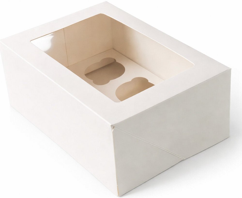 Kvalitní bílá papírová krabice na 6 muffiny nebo cupcakes je ideálním řešením pro každého, kdo chce své dezerty nejen bezpečně zabalit, ale i atraktivně prezentovat. Díky průhlednému okénku umožňuje okamžitý pohled na obsah, což zvyšuje atraktivitu produktu při prodeji.