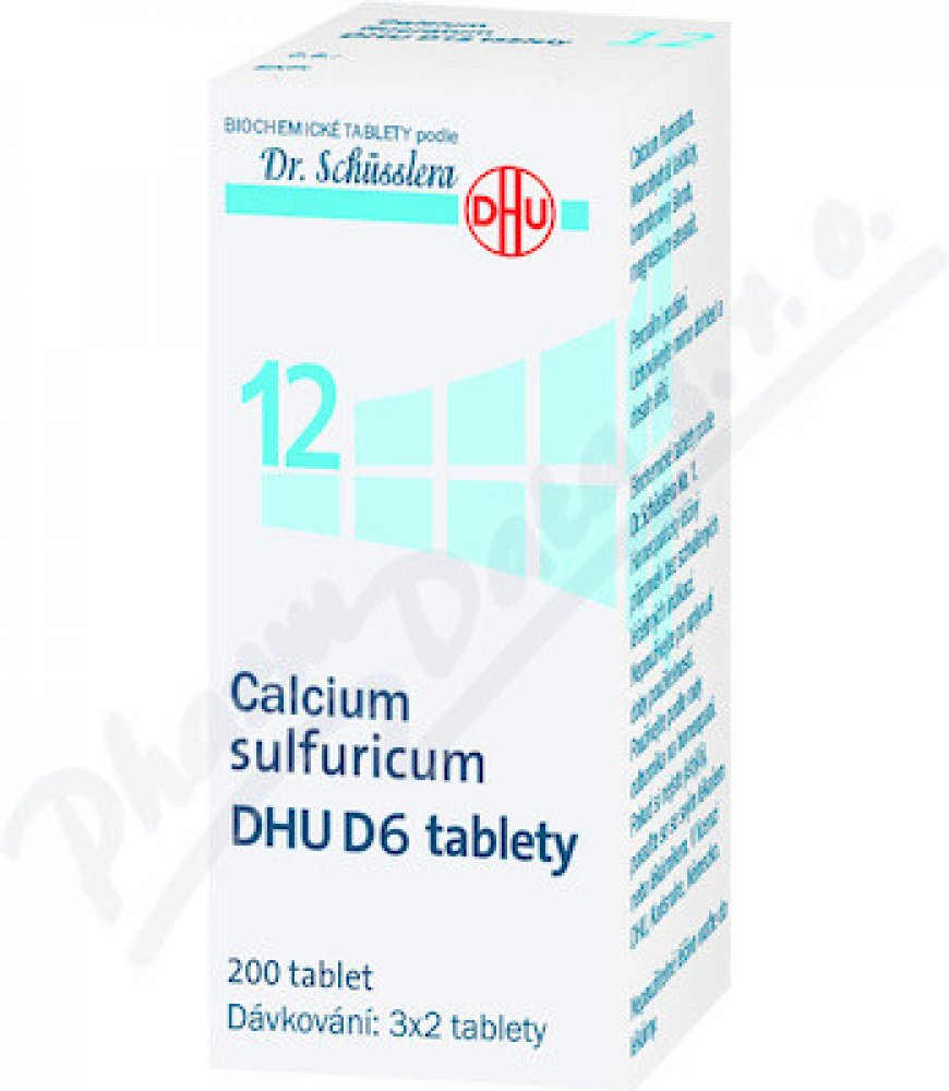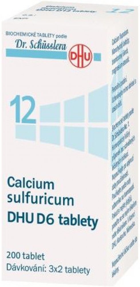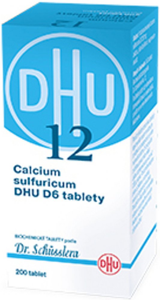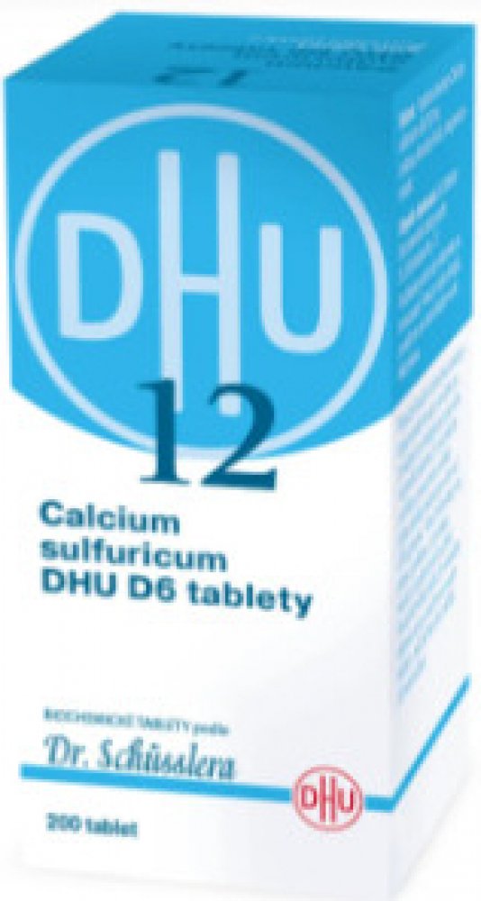 Calcium sulfuricum DHU je homeopatický léčivý přípravek bez schválených léčebných indikací. Biochemické tablety podle Dr. Schüsslera No. 12. Tzv. Schüsslerovy soli.