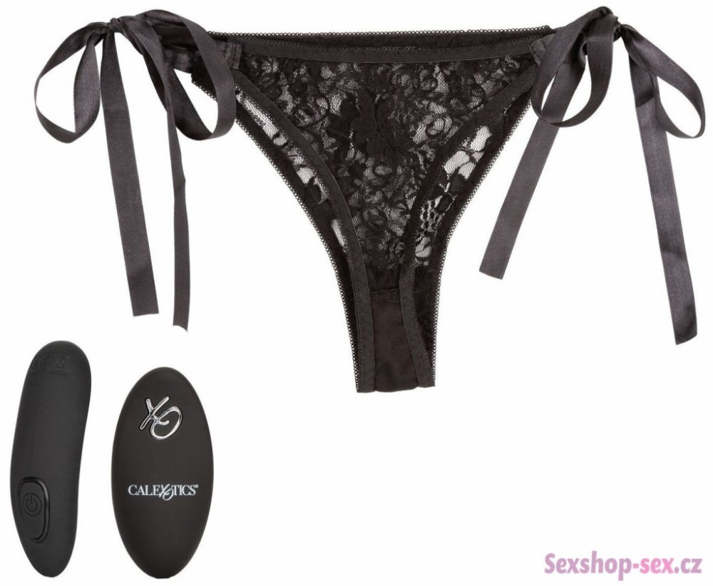 V balení najdete krajkové kalhotky, malý vibrátor a dálkový ovladač. Vibrátor stačí vložit do kalhotek a zábava doma či venku může začít. Kalhotky mají na bocích zavazování saténovými stuhami a v rozkroku speciální kapsu na mini vibrátor, která ho udrží v takové poloze, aby cílil přímo na klitoris. Vibrace jsou extra silné. Zvolte jeden ze 12 vibračních...