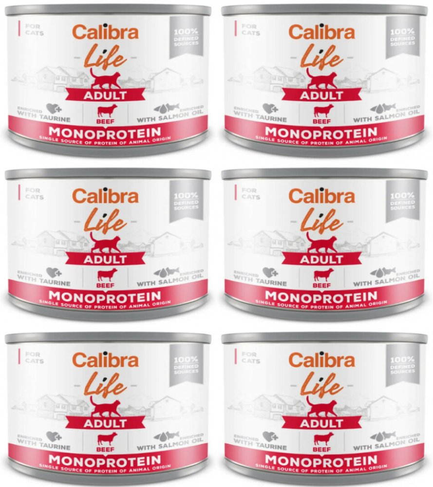 Calibra Cat Life Adult Beef je kompletní vlhké krmivo s hovězím pro dospělé kočky Monoproteinová receptura je bez obilovin, bez lepku a je sestavena z limitovaného počtu ingrediencí, které jsou 100% specifikovány. Obsahuje pro kočky nezbytný taurin a je obohacena lososovým olejem.