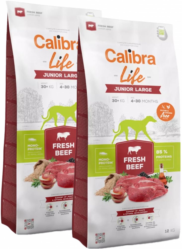 Calibra Dog Life Junior Large Fresh Beef 2 x 12 kg