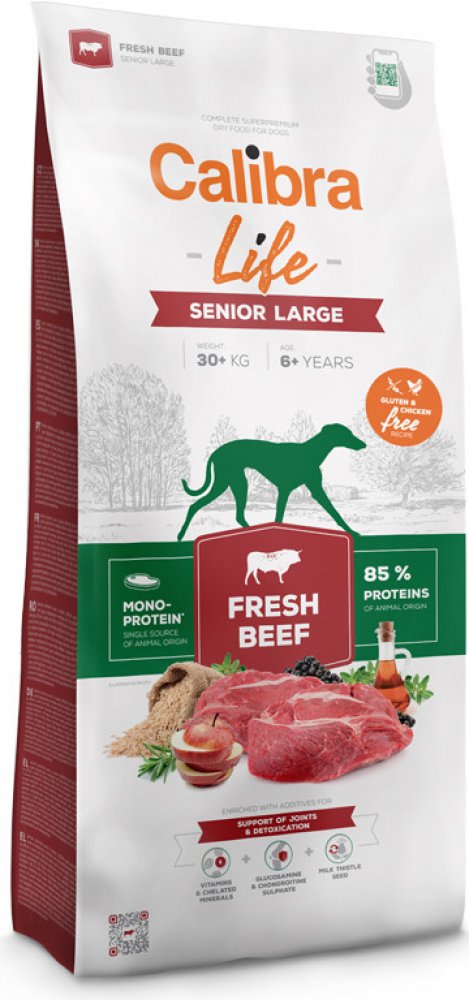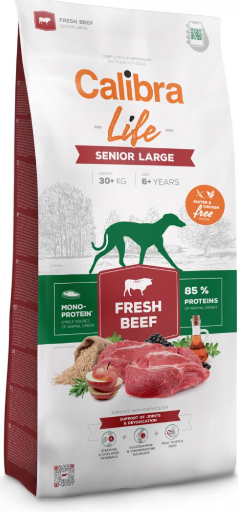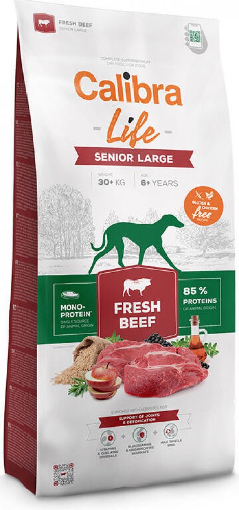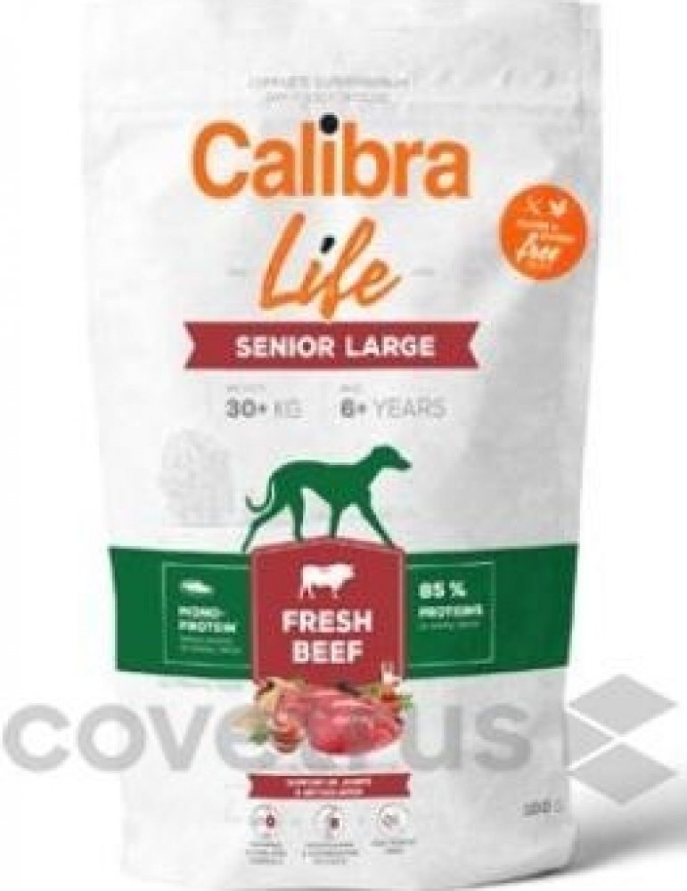 Výhoda pro psa i chovatele: Calibra Life Senior Large Fresh Beef podporuje kloubní zdraví, vitalitu a optimální kondici starších velkých psů, a chovatelům přináší jistotu kvalitní a vyvážené péče o jejich čtyřnohé parťáky.
