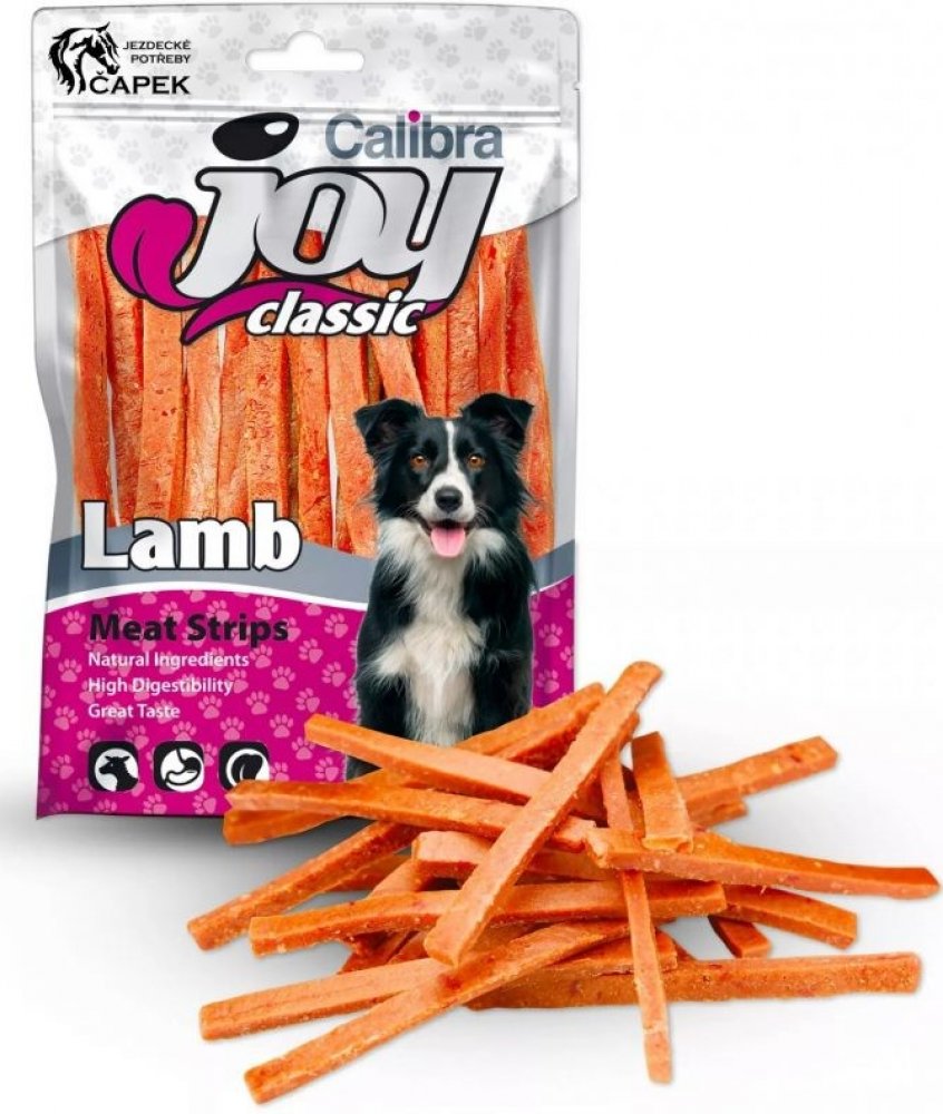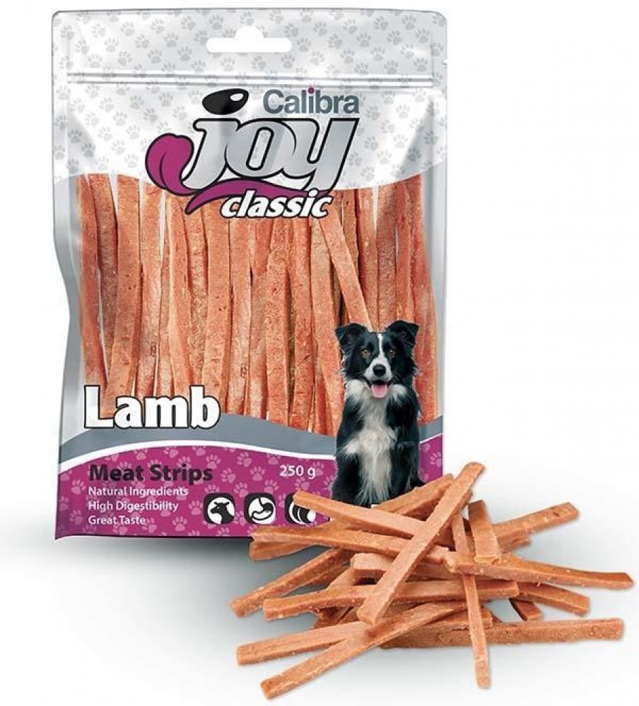 Jehněčí proužky Zdravý, voňavý a lehce stravitelný pamlsek, který skvěle obohatí jídelníček vašeho mazlíčka. Pochoutka z jehněčího masa, které je typické svou výraznou chutí, má optimální dietetickou hodnotu, a je vhodné i pro velmi citlivé nebo alergické pejsky. Doplňkové krmivo pro psy.Složení: jehněčí maso, rostlinný protein, glycerin, kukuřičný škrob.Analytické složky: hrubý protein 45%, obsah tuků 6%, hrubá vláknina 3%, hrubý popel 4%, vlhkost 20%.Krmný návod: Podávejte jako odměnu. Zajistěte dostatek čerstvé pitné vody. Uchovávejte na suchém a chladném místě. Po otevření obal opět uzavřete a uložte do chladničky. Není určeno pro konzumaci člověkem. Nedávejte absorbent vašemu psovi.
