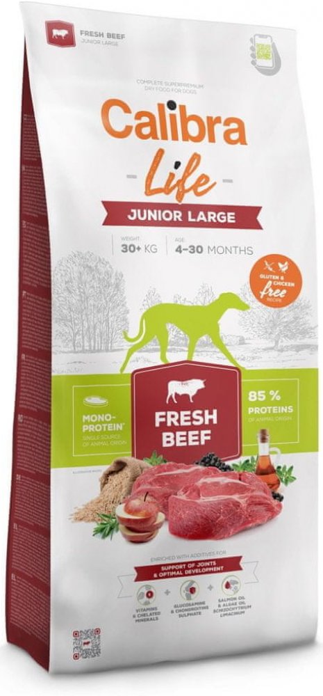 Granule s čerstvým hovězím pro mladé psy (4–30 měsíců) velkých plemen (nad 30 kg) jsou skvěle stravitelné a vhodné i pro citlivé zažívání. Hovězí receptura je 100% monoproteinová, obsahuje 85 % proteinů živočišného původu. Neobsahuje lepek ani kuřecí. Vybraná funkční aditiva přispívají k podpoře kloubů a napomáhají optimálnímu vývoji velkého psa.