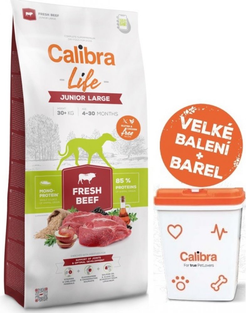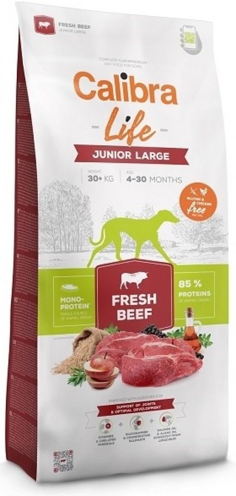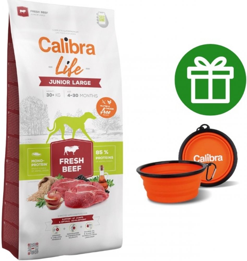 Calibra pro juniory pro velká plemena s běžnou aktivitou hovězí Calibra 12 kg superprémiové suché na pohybový aparát poloměkké Calibra Life 28 % rýže 12 kg z České republiky vysoká (>500mg) 14 % 2.5 % 1.1 % 0.8 % 5.6 % 0.2 % 0.1 % vysoká středně (25-40%) preventivní (p>1,0%) základní snadný přechod aktivní (probiotika) možné částečná (země výroby)