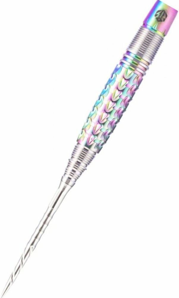 Steelové šipky Caliburn Player - Rynit jsou wolframové šipky (95% tungsten) v úchvatném designu. Barrely mají unikátní drážkování zvýrazněné duhovými barvami. Barrely jsou doplněny plastovými letkami s násadkami. Šipky mají vyměnitelný systém hrotů Caliburn Replaceable Point System. Dodávány jsou i s klíčem pro výměnu hrotů Caliburn (X1997).