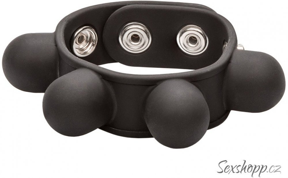 Máte rádi pleskání varlat o stehna , ať už při sexu nebo jen tak při chození po bytě? Nebo je jen rádi škádlíte v rámci BDSM hrátek? Nasaďte si na ně natahovač varlat Weighted Ball Stretcher , který má čtyři závažíčka o celkové váze 57 g . Natahovák je 100% voděodolný a vyrobený z luxusního silikonu , který je elastický, bezpečný pro tělo a sametově hebký na dotek . Do silikonu jsou pak zality kovové kuličky. Díky třem drukům ho jednoduše nasadíte na varlata a nastavíte si potřebný obvod , a tím i míru zaškrcení . Druky jsou od sebe ve vzdálenosti 2 cm . Pokud budete pou