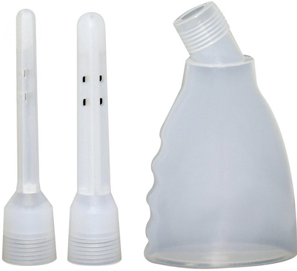 Anální sprcha s dvěma nástavci, které můžete měnit dle preferencí. Celé zařízení je průhledné a tedy můžete přesně vidět kolik tekutiny jste již použili a při čištění dokonale víte, že nikde nic nezůstalo. Po vyčištění a dezinfekci je možné sprchu používat opakovaně.