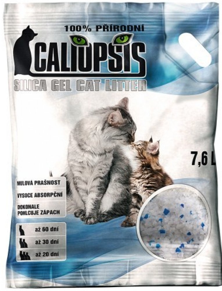 · JEDNODUCHÉ POUŽITÍ· JEDNODUCHÉ ČIŠTĚNÍ A ÚDRŽBA· VÍCE POHODLÍ – MÉNĚ ČASTÁ POTŘEBA VÝMĚNY· NETOXICKÉ: PŘÁTELSKÉ K PLANETĚ, LIDEM I ZVÍŘATŮM· MENŠÍ SPOTŘEBA: MĚSÍČNÍ SPOTŘEBA JE AŽ 1/8 OPROTI BĚŽNÝM STELIVŮM!· NEULPÍVÁ NA TLAPKÁCH· NENÍ ZAPOTŘEBÍ ODSTRAŇOVÁNÍ HRUDEK S MOČÍINSTRUKCE1. Naplňte kočičí toaletu 4cm vrstvou silikátového steliva Caliopsis.2. Udržujte čistotu toalety pravidelným odstraňováním tuhého odpadu děrovanou lopatkou.3. Jednou za měsíc vyprázdněte celou toaletu a znovu doplňte stelivo. Je to opravdu jednoduché!UŽITEČNÉ RADYZměna druhu steliva: Ojediněle může kočka odmítat nové stelivo. V takovém případě přimíchejte malé množství silikátového steliva Caliopsis ke stávajícímu stelivu, a postupně zvyšujte podíl steliva Caliopsis.Umístění: Silikát nepřetržitě absorbuje vlhkost, proto umístěte toaletu na suché místo.Upozornění: Důkladně odstraňujte použité stelivo a dodržujte při tom hygienu. Těhotné ženy a osoby se sníženou imunitou by neměly přijít do styku s použitým stelivem. Nezapomeňte si dobře umýt ruce po kontaktu s použitým stelivem. Kočičí toaletu pravidelně čistěte.Poznámka: 7,6 L balení vám vydrží při používání pro 2 kočky 1 měsíc, pro 3 kočky 20 dní. 16 L balení vám vydrží pro 2 kočky 2 měsíce, pro 3 kočky 50 dní.Není určeno ke konzumaci !
