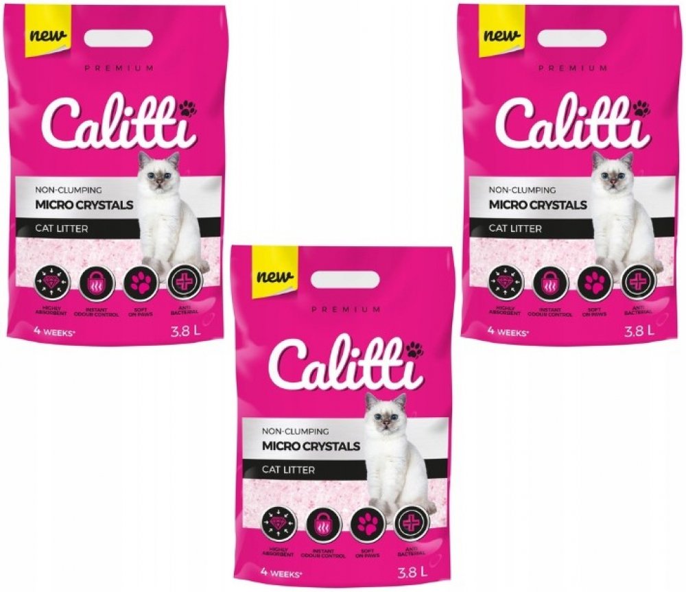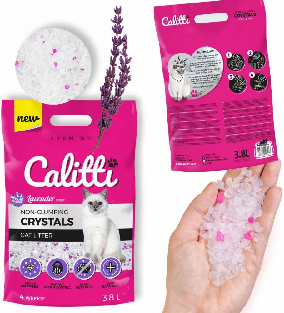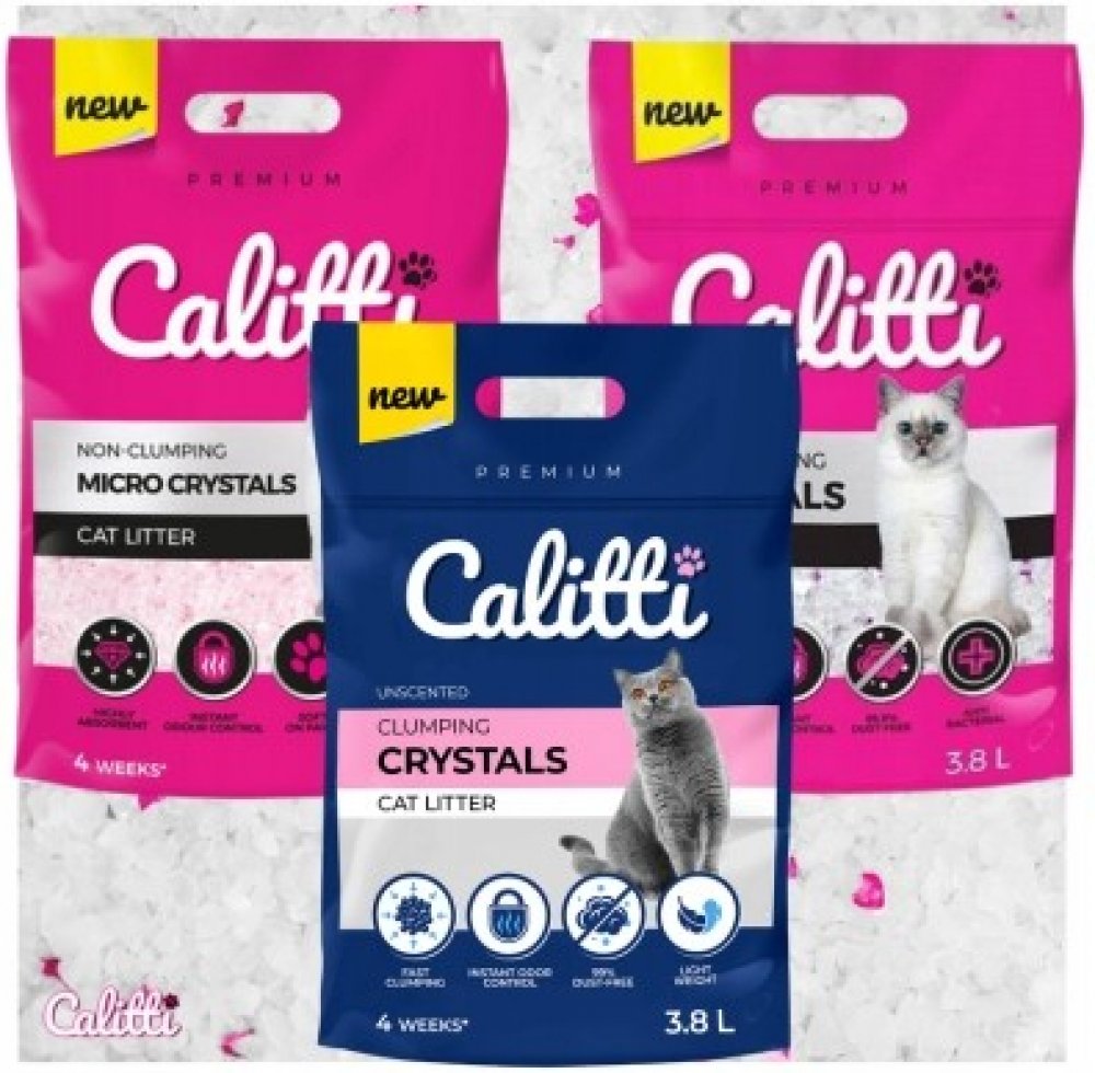Calitti MICRO CRYSTALS je ultra jemné silikonové stelivo pro nejnáročnější kočky a jejich majitele. Okamžitě absorbuje tekutinu a již během několika sekund eliminuje ošklivé pachy. Malé granule jsou šetrné k citlivým tlapkám. Navíc stelivo zabraňuje růstu bakterií, díky čemuž bude udržování domu v čistotě mimořádně snadné a dlouhodobé. A vy ušetříte čas a věnujete zábavu se svým milovaným kocourem.