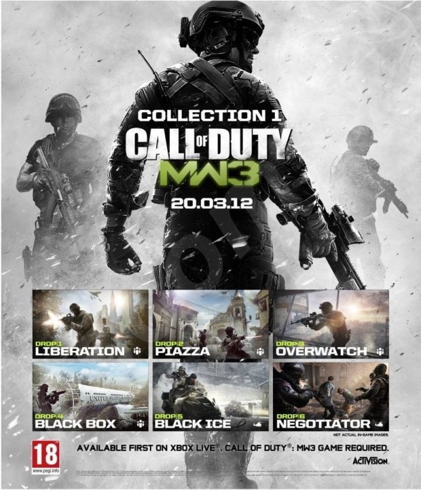 První DLC pro Modern Warfare 3 obsahuje: čtyři nové multiplayerové mapy a dvě Spec Ops mise (Black Ice a Negotiator).