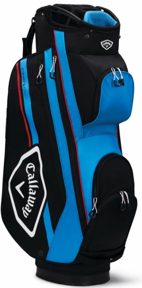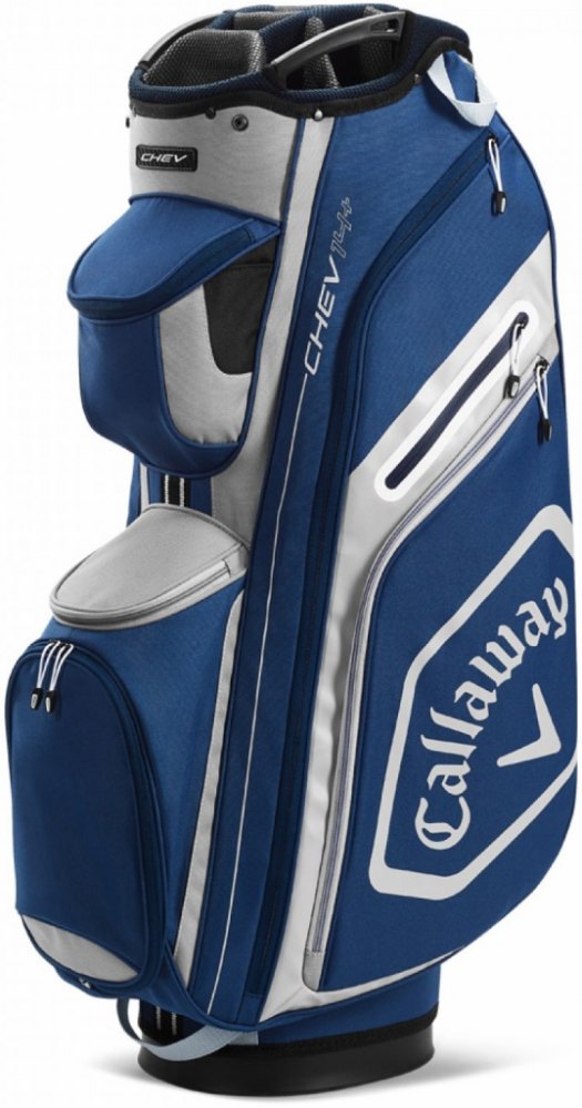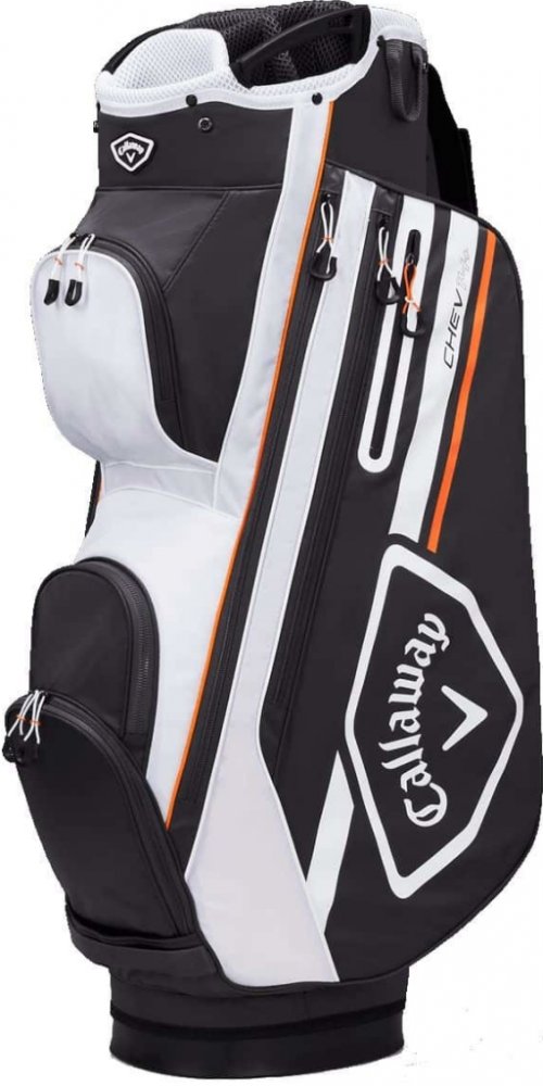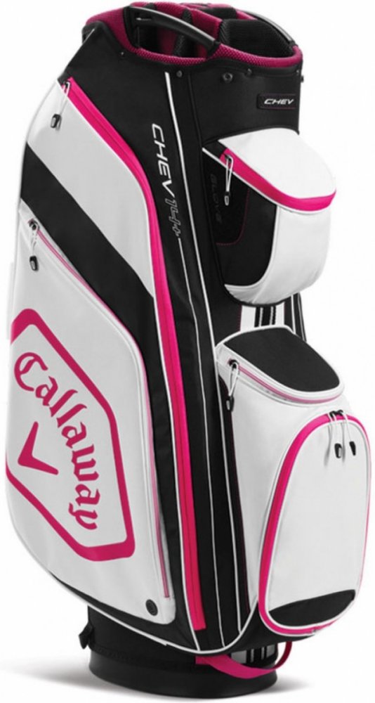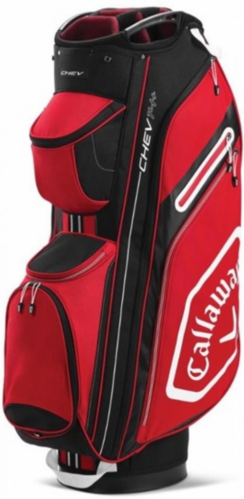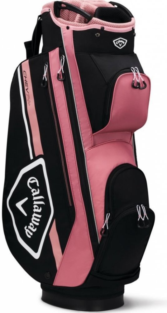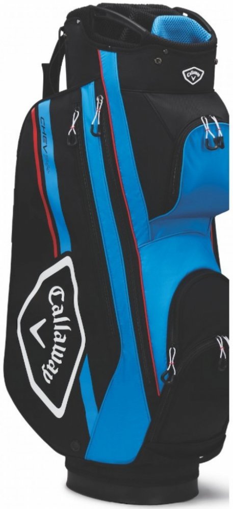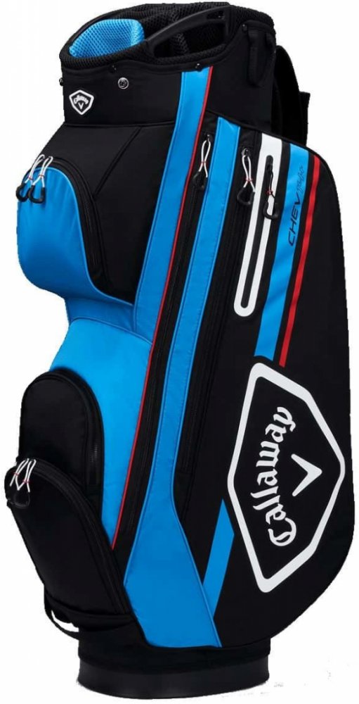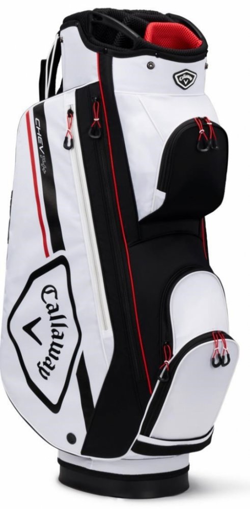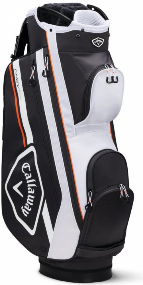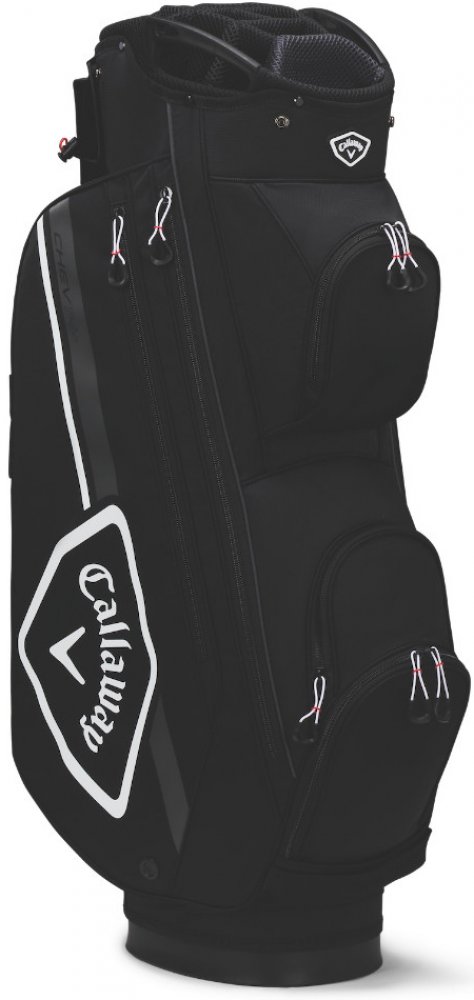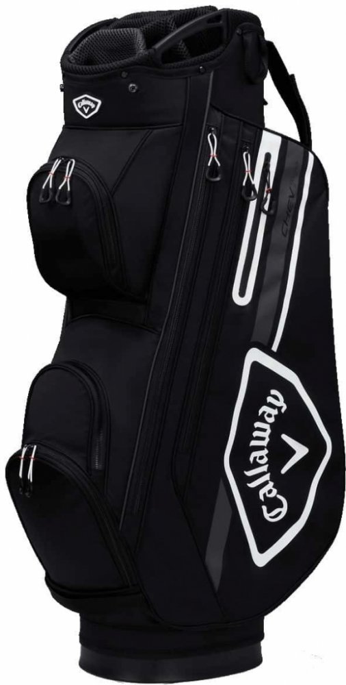Callaway golfový cart bag Chev 14+ je navržen tak, aby splnil všechny požadavky, které hráč potřebuje. Nabízí promyšlený a prostorný systém kapes, zabudované postranní madla a 14-ti cestný organizér golfových holí se stabilní základnou připravenou též pro elektrické vozíky. Elegantní a promyšlený cart bag bez nožiček, určený pro vozík.