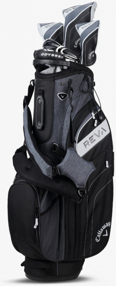 Tato sada REVA 8 kusů obsahuje driver s technologií kompozitní korunky Callaway, dřevo 5, hybrid 6, železa 7 a 9, sand wedge, putter, bag na vozík a (4) prémiové kryty holí.Nová sada REVA 8 kusů od Callaway, značky číslo 1 pro dámské golfové vybavení, je navržena s ohledem na maximální výkon a sebevědomí. Tyto hole jsme navrhli pro ženy všech úrovní dovedností, které chtějí zvýšit svou vzdálenost, zahrát skvělé rány a užít si hru více než kdy předtím.VLASTNOSTI A VÝHODYDlouhá vzdálenost a tolerance driveruZ inovativního kompozitního materiálu korunky, který optimalizuje hmotnost driveru. Tato konstrukce poskytuje výjimečnou kombinaci vzdálenosti a tolerance pro maximální sebevědomí při každém švihu.Snadno se odpalující dřevo fairwayovéOptimalizovaná konstrukce pro vysoký let míče.Maximální tolerance u železVelké, nadměrné železa s hlubokou dutinou na zadní straně pro snadné odpalování a toleranci při špatných úderech.Navrženo pro rychlost švihu ženProgrese loftu a složení sady jsou postaveny na základě rozsáhlého testování s golfistkami.Tour-ově ověřený putter Odyssey Stroke LabObsahuje hřídel Odyssey Stroke Lab, která vítězí na majorech, pro zlepšení tempa a konzistence úderu při patování.Nový prémiový golfový bag a kryty holíKrásný a funkční, náš prémiový bag REVA a kryty holí doplňují sadu.