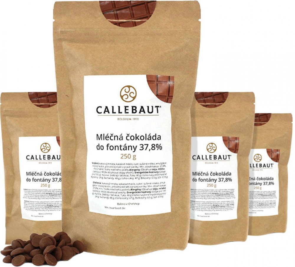 Mléčná belgická čokoláda Callebaut do čokoládové fontány a pro čokoládové fondue - pro dokonalý zážitek a bezproblémový provoz čokoládové fontány doporučujeme použití luxusní belgické čokolády Callebaut. Lze použít i jiné druhy čokolády, ale ochudíte se tím o jedinečnou chuť a vůni belgické čokolády, která je považována za nejlepší na světě. Tato čokoláda má vyjímečné vlastnosti a lépe teče, než j...