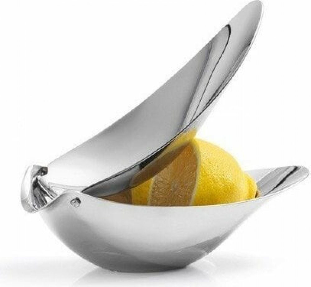 Pozoruhodná ždímačka na citrony Callista je součástí řady německého výrobce Blomus, který se specializuje na předměty z nerezové oceli. Organický tvar sestávající z podstavce ve tvaru lodičky a protáhlého lisu ve tvaru listu vypadá atraktivně i díky použití leštěné nerezové oceli. Zrcadlový povrch materiálu odráží své okolí a šedavý lesk oceli krásně kontrastuje se zářivě žlutou barvou citronů. Ca...