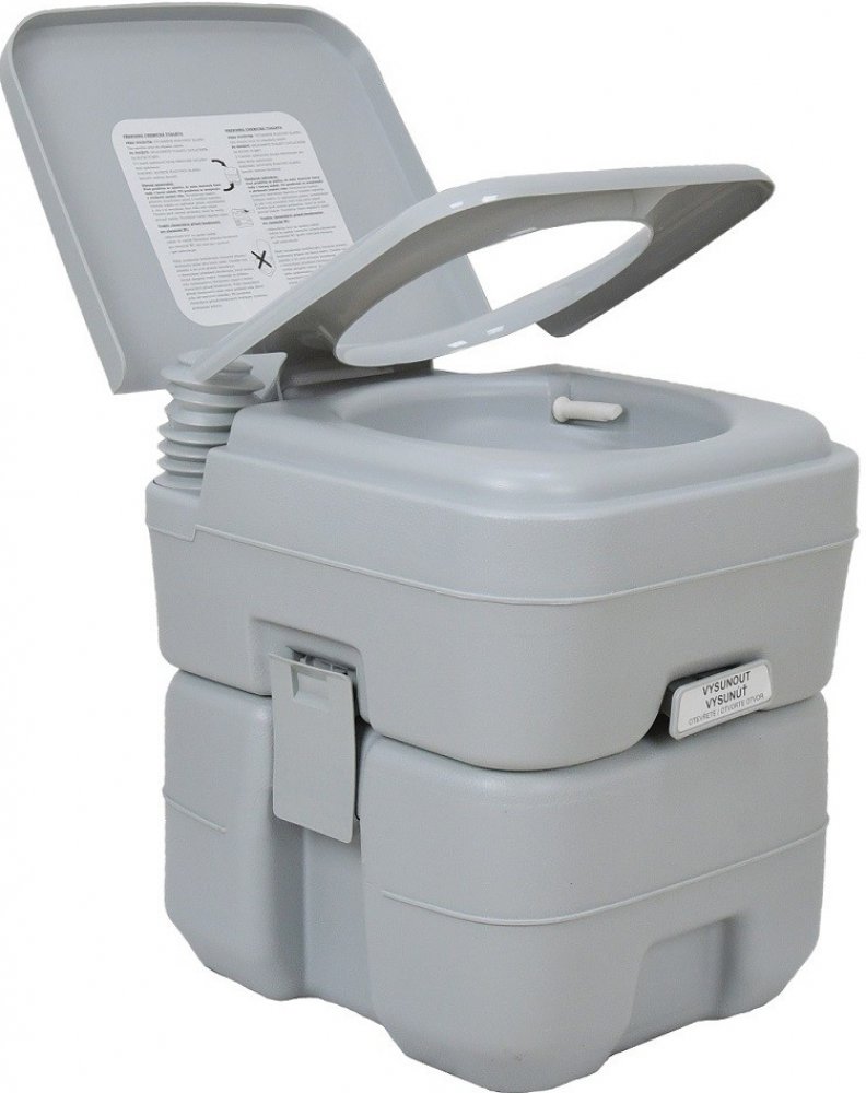 Přenosné WC s kapacitou vodní nádrže 12 l a odpadní nádrže 20 l.