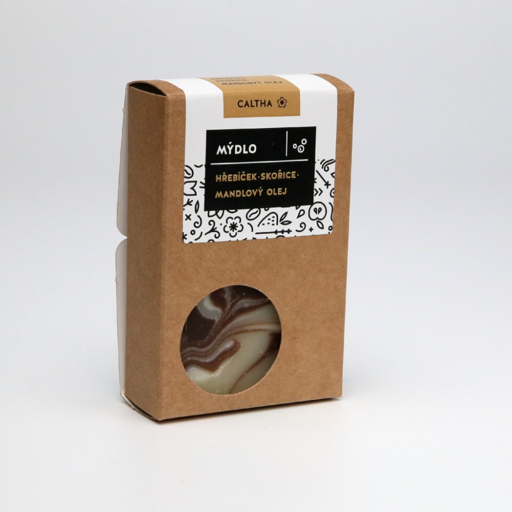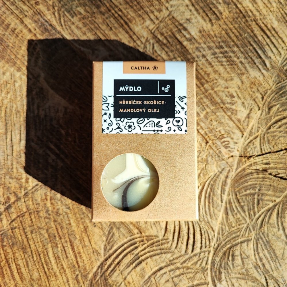 Hřebíčkovo-skořicové mýdlo s mandlovým olejem prohřeje Váš organismus, uvolní celkové napětí a docílí uvolněné, pozitivně laděné atmosféry.