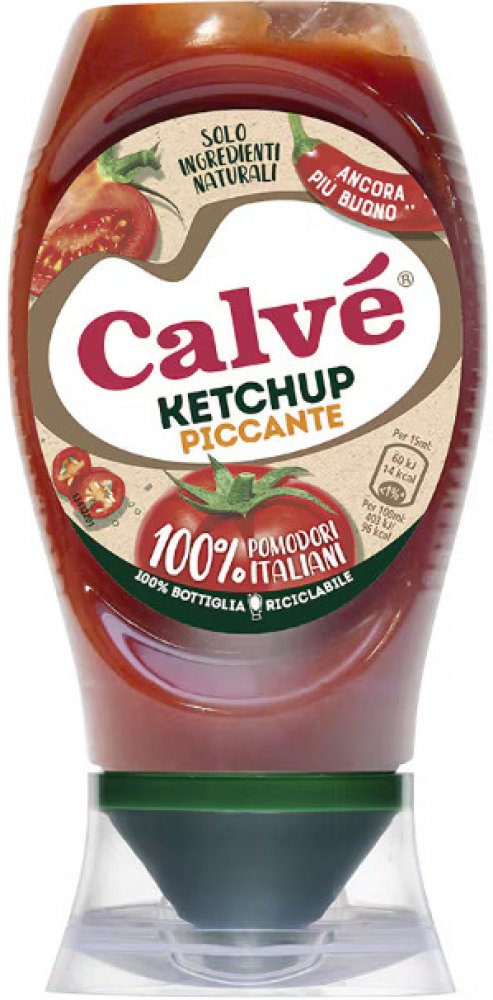 Calvé Piccaante Ketchup, ještě lepší se 100% italskými rajčaty a pouze přírodními ingrediencemi. Pro silnější jazýčky doplňte své pokrmy pikantním kečupem Calvé, který je ideální k hamburgerům a grilovanému masu.
