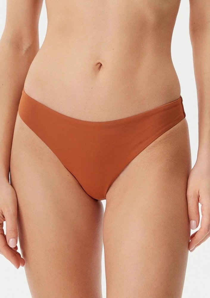 Dámské plavky světoznámé značky Calvin Klein - spodní díl. Kalhotky jsou klasického strřihu vpředu mírně vykrojené. Na zadní části plavek je našité malé logo značky. Kalhotky jsou celé podšité látkou, aby plavky držely tvar a neprosvítaly. Plavky jsou vyrobené z 50% ECONYLU, je to tzv. recyklovaný nylon.