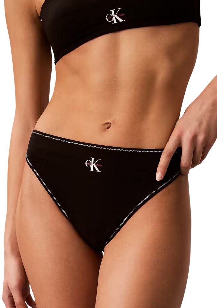 Plavkové kalhotky Calvin Klein v efektní černé barvě s kontrastním bílým prošitím.