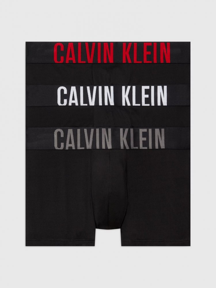 Pánské boxerky od světoznámé americké značky Calvin Klein. Boxerky jsou vyrobeny z příjemného a jemného, z 85% recyklovatelného materiálu. Mají širší gumu s nápisem Calvin Klein na přední i zadní straně. Balení obsahuje 3 kusy boxerek v černé barvě v dárkové krabičce. Popis Calvin Klein na gumě je ve třech barvách.