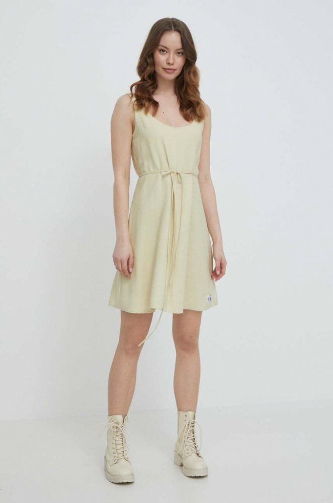 Dámské béžové šaty Calvin Klein.- v pase sňůrka na stažení.- tenká, méně elastická látka.Materiál:93% viskóza7% polyesterStřih:Regular Fit