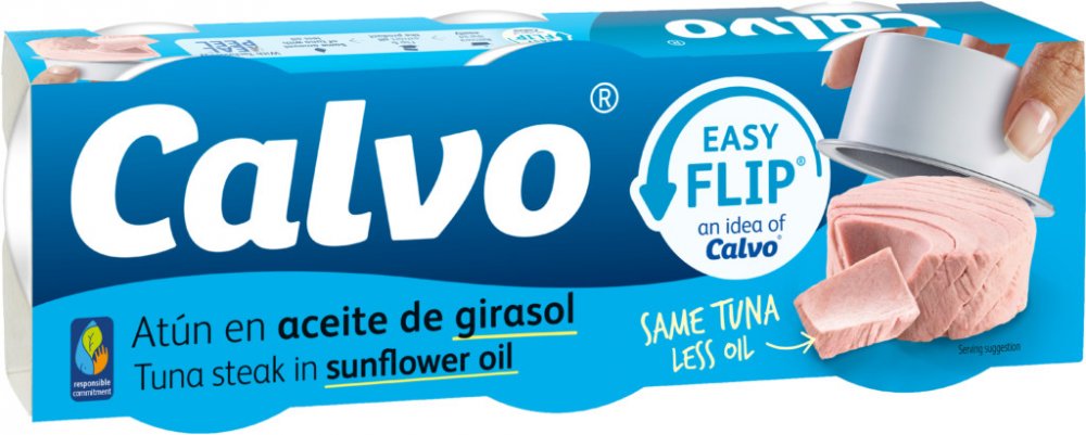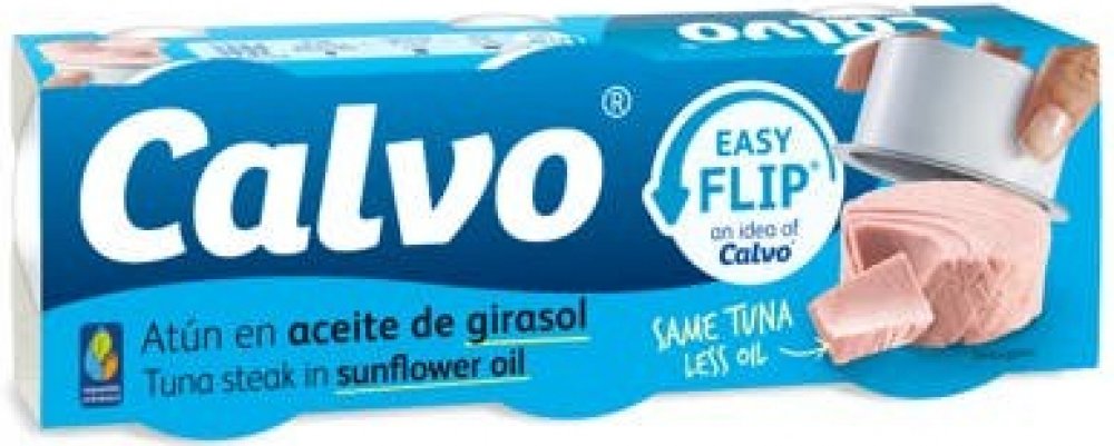Calvo Tuňák ve slunečnicovém oleji 3x65 g. Představujeme nový milník. Obal Easy Flip®, se kterým se zrodil nový způsob konzumace tuňáka. Jednoduché vyklopení otočením a snazší otevírání díky hliníkovému víku s velkým úchytem. Více šťavnatosti a chuti díky nové technologii Real Peel®. Zdravější a zodpovědnější k životnímu prostředí díky menšímu množství oleje, se stejným množstvím tuňáka. Calvo lov...