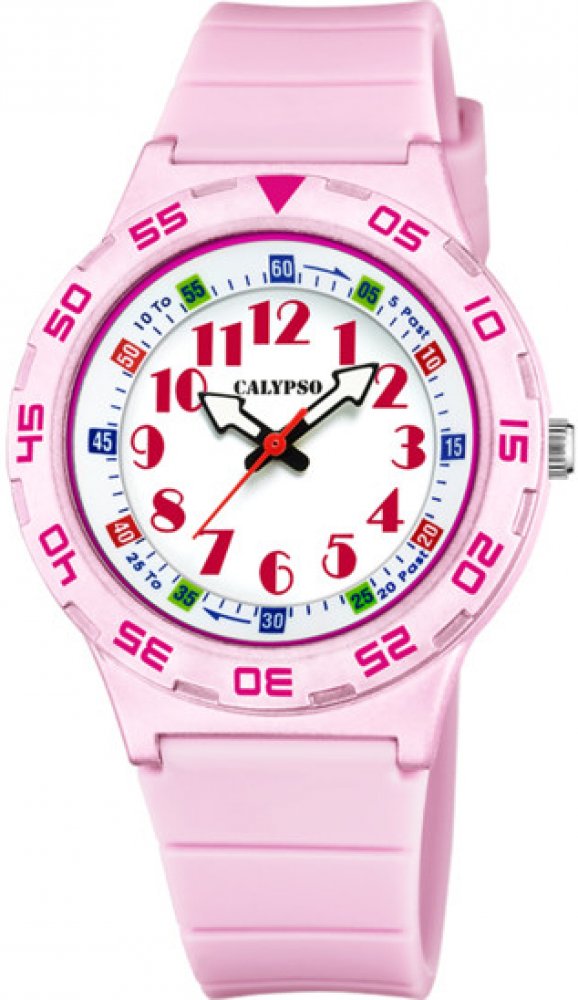 Calypso analogové silikon sportovní dětské bateriové - quartz 36 mm plast 100 m bateriové 50 g akrylátové kulaté růžová bílá 11.9 mm