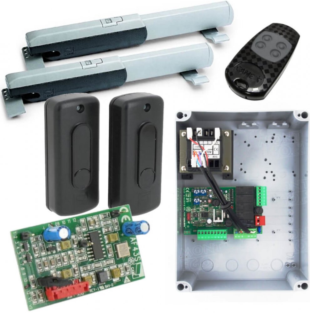 CAM ATI 3002 je kompletní sada pohonu pro dvoukřídlou bránu do průjezdové šíře 6 metrů a do hmotnosti křídla 400 kg. Napětí motoru CAM A3000 je 230 V a poskytuje bráně výkon 150 W. Motor je vybaven koncovými spínači pro určení polohy otevřeno. Určeno pro intenzitu provozu 50%.
