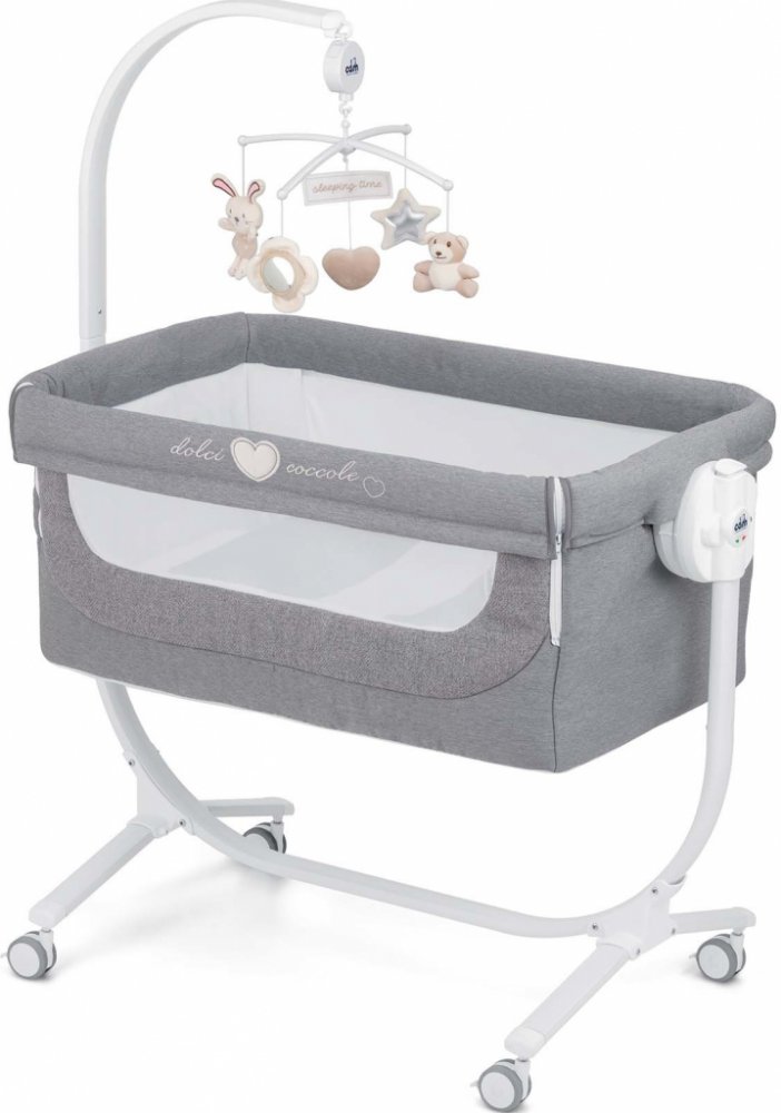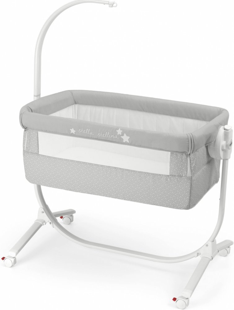 Díky odnímatelné bočnici a možnosti posunout celé lůžko na rámu do strany (až 16cm)ji lze snadno umístit těsně vedle vaší postele. Pro snadnou manipulaci po bytě je vybavena kolečky. Cullami postýlku lze nastavit do různých výšek i polohovat. Je ukotvena v kovovém rámu, postýlku zle zajistit napevno nebo používat jako kolébku.