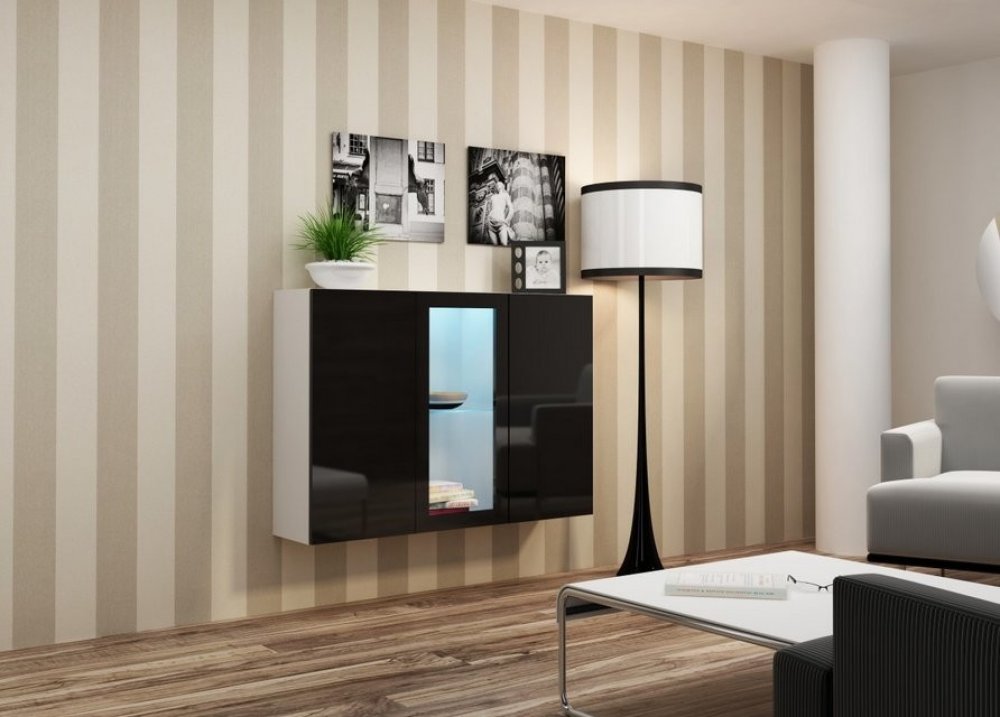 Provedení: Luxusní komoda Vigo zaujme především svým velice moderním a nadčasovým designem. Je vyrobena z kvalitního lamina. Korpus je vyroben v barevném provedení bílá mat, dvířka jsou z MDF v provedení černá lesk. Komoda je závěsná a obsahuje otevírací systém dvířek Push/Click