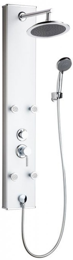 Sprchový panel Texel 2.0 od značky Camargue zapůsobí svým luxusním hliníkovým provedením. Představuje perfektní řešení pro luxusní zážitek ze sprchování s hlavovou a ruční sprchou. S tímto sprchovým systémem můžete svůj den zahájit příjemnou relaxační sprchou. Komfortní kompletní sada je tvořena ruční sprchou s pěti možnostmi nastavení, čtyřmi masážními tryskami a velkou, kulatou hlavovou sprchou. Ovládání integrované jednopákové baterie, která slouží k nastavení množství a teploty vody, je proto mimořádně snadné a pohodlné. Velmi praktické jsou výstupky proti vodnímu kameni, které zabraňují vzniku usazenin vodního kamene na výtokových otvorech sprchy. Sprchový panel lze navrtat, využít k tomu můžete montážní materiál obsažený v balení.
