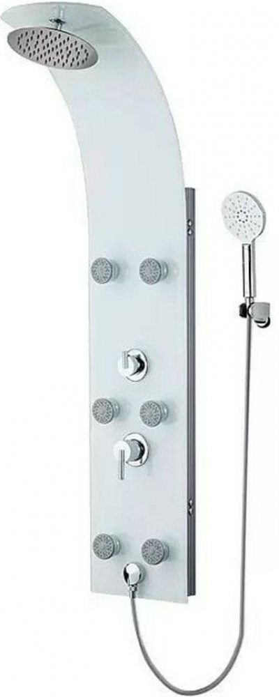 Sprchový panel Sylt 2.0, masážní trysky, výška: 132 cm, s pákovou baterií, bílý - N item94730 4008431600031 Barva: Bílá Sprchový panel Sylt 2.0, masážní trysky, výška: 132 cm, s pákovou baterií, bílý Funkce, vlastnosti a další informace Elegantní panel ve skleněném provedení Integrovaná páková baterie Se 6 masážními tryskami Snadné použití s 3-cestným přepínačemRozměry Průměr ruční sprchy: 12 cm Průměr horní sprchy: 20 cm Výška: 132 cm Připojovací rozměr dodávky v palcích: 1 1/2″ Počet bočních sprch: 6 ks. Hmotnost 14,6 kg