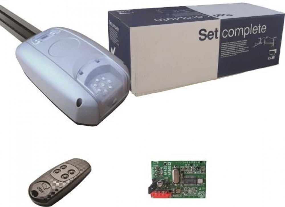 Tažný pohon na garážová vrata. Max. plocha vrat 14m2, max. výška vrat 2,25m. Sada obsahuje pohon se zabudovanou elektronikou, kartu přijímače, dálkový ovladač TOP-432-EE, transmisní dráhu V-06001-dráha je součástí sady (délka 3,02 m). CAME pohon max. 14 m2