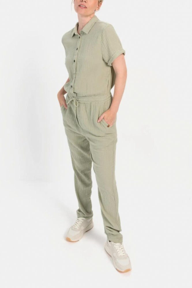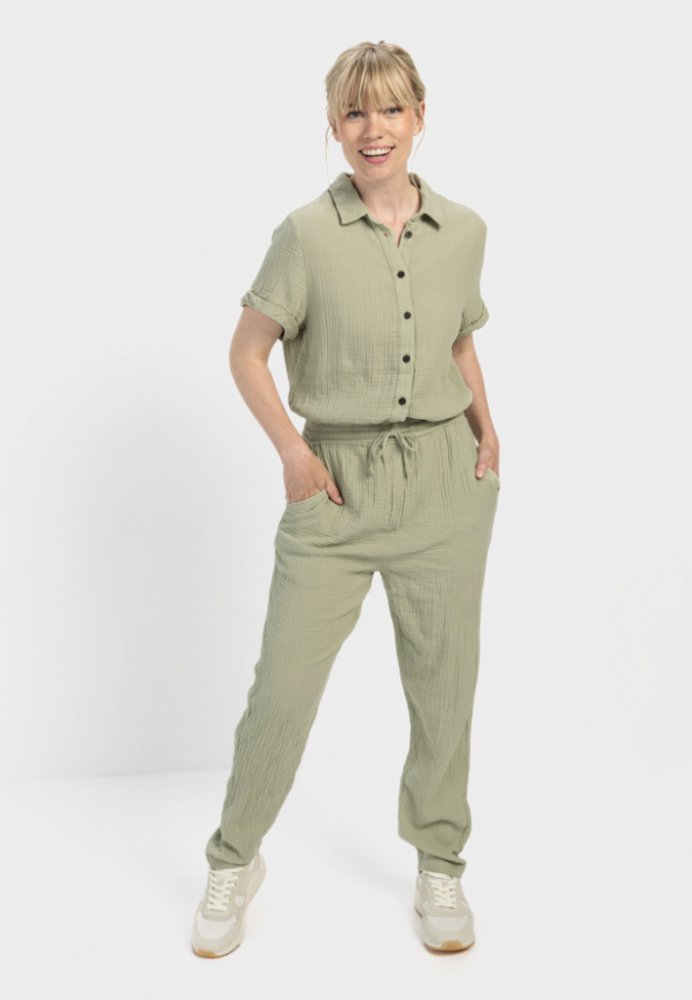 Dámský letní overal. Zapínání na knoflíky, pružný pas je možné stáhnout tkaničkou. Působivý sezónní overal, nezaměnitelný styl a šarm. Materiálové složení zaručuje lehkost, prodyšnost a příjemný pocit při nošení. V letním období jistě oceníte i mírně chladivý efekt tohoto přírodního materiálu. Nápaditý a žensky rafinovaný kousek, který stylově osvěží Váš letní šatník.