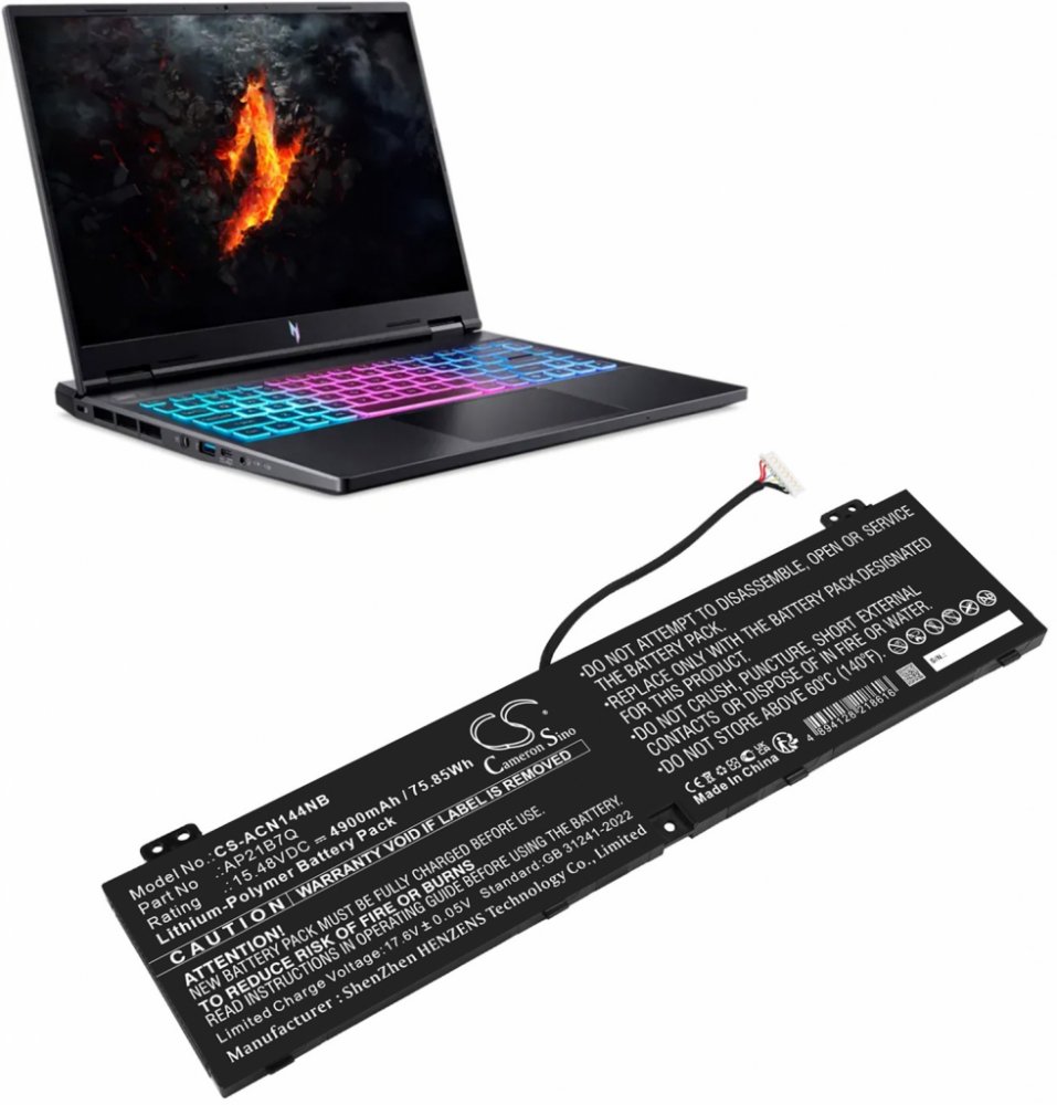 Váha brutto 544 g, barva černá, typ Li-Polymer, výkon 75.85 Wh, váha netto 284 g, kapacita 4900 mAh, napětí 15.48 V. Nitro 14 (AN14-41), Nitro 14 AN14-41-R0CD, Nitro 14 AN14-41-R0KZ, Nitro 14 AN14-41-R28G, Nitro 14 AN14-41-R29T, Nitro 14 AN14-41-R3DL, Nitro 14 AN14-41-R3MX, Nitro 14 AN14-41-R4M4, Nitro 14 AN14-41-R4X2, Nitro 14 AN14-41-R54G, Nitro 14 AN14-41-R5AD, Nitro 14 AN14-41-R5LJ, Nitro 14 A...