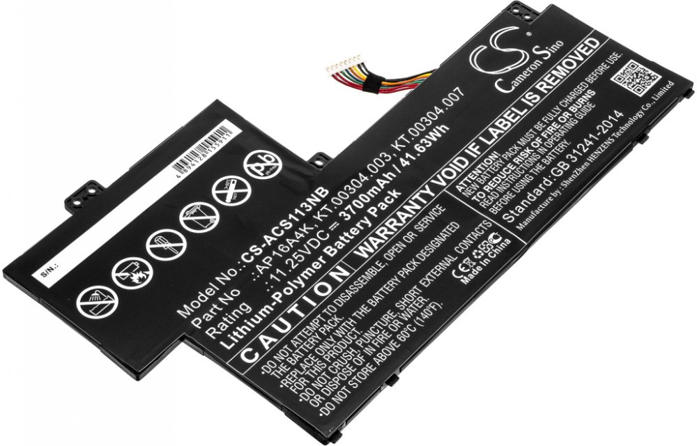 Jedná se o plnohodnotnou a kvalitní náhradu vaší původní baterie. Baterii můžete dobíjet originální nebo kompatibilní nabíječkou určenou pro váš přístroj. Baterie je zabalena v pěkném, kvalitním plastovém obalu.Rozšířená záruka na ztrátu kapacity z 6 na 12 měsíců Výrobce této baterie společnost Cameron Sino si stojí za vynikající kvalitou svých výrobků. Jako důkaz kvality dává spotřebitelům záruku na ztrátu kapacity u této baterie 12 měsíců.Vlastnostibaterie nemá paměťový efektje chráněna proti přebití a přepólováníživotnost až 1200 nabíjecích cyklůNávod Uživatelský manuál naleznete na této stránce.KompatibilitaAcer:Aspire One Cloudbook 11 Ao1–13Aspire One Cloudbook Ao1–132Aspire One Cloudbook Ao1–132-CAspire One Cloudbook Ao1–132-HAspire One Cloudbook Ao1–132-NSwift 1 Sf113–31-A14qSwift 1 Sf113–31-C02pSwift 1 Sf113–31-C035Swift 1 Sf113–31-C07tSwift 1 Sf113–31-C0anSwift 1 Sf113–31-C0umSwift 1 Sf113–31-C10dSwift 1 Sf113–31-C16zSwift 1 Sf113–31-C1mgSwift 1 Sf113–31-C243Swift 1 Sf113–31-C2jpSwift 1 Sf113–31-C2pvSwift 1 Sf113–31-C2rbSwift 1 Sf113–31-C2v8Swift 1 Sf113–31-C36vSwift 1 Sf113–31-C380Swift 1 Sf113–31-C3ajSwift 1 Sf113–31-C3j2Swift 1 Sf113–31-C3p4Swift 1 Sf113–31-C4b2Swift 1 Sf113–31-C4t6Swift 1 Sf113–31-C569Swift 1 Sf113–31-C5vuSwift 1 Sf113–31-C5zhSwift 1 Sf113–31-C6btSwift 1 Sf113–31-C6wuSwift 1 Sf113–31-C74mSwift 1 Sf113–31-C7g2Swift 1 Sf113–31-C7ukSwift 1 Sf113–31-C7zjSwift 1 Sf113–31-C8dySwift 1 Sf113–31-C9fkSwift 1 Sf113–31-C9sjSwift 1 Sf113–31-C9t8Swift 1 Sf113–31-C9×kSwift 1 Sf113–31-F14pSwift 1 Sf113–31-P05fSwift 1 Sf113–31-P09kSwift 1 Sf113–31-P0awSwift 1 Sf113–31-P0n9Swift 1 Sf113–31-P0×6Swift 1 Sf113–31-P0zfSwift 1 Sf113–31-P13pSwift 1 Sf113–31-P14uSwift 1 Sf113–31-P1cpSwift 1 Sf113–31-P1nxSwift 1 Sf113–31-P1tsSwift 1 Sf113–31-P1u7Swift 1 Sf113–31-P1ysSwift 1 Sf113–31-P20uSwift 1 Sf113–31-P216Swift 1 Sf113–31-P259 150Swift 1 Sf113–31-P28uSwift 1 Sf113–31-P29tSwift 1 Sf113–31-P2cpSwift 1 Sf113–31-P2jxSwift 1 Sf113–31-P2nlSwift 1 Sf113–31-P2veSwift 1 Sf113–31-P2vhSwift 1 Sf113–31-P2×aSwift 1 Sf113–31-P2×uSwift 1 Sf113–31-P31rSwift 1 Sf113–31-P3bgSwift 1 Sf113–31-P3dzSwift 1 Sf113–31-P3e2Swift 1 Sf113–31-P3p0Swift 1 Sf113–31-P3tySwift 1 Sf113–31-P41bSwift 1 Sf113–31-P42vSwift 1 Sf113–31-P49cSwift 1 Sf113–31-P4a2Swift 1 Sf113–31-P4d0Swift 1 Sf113–31-P4fhSwift 1 Sf113–31-P4msSwift 1 Sf113–31-P4tkSwift 1 Sf113–31-P4yxSwift 1 Sf113–31-P4zdSwift 1 Sf113–31-P52eSwift 1 Sf113–31-P55rSwift 1 Sf113–31-P57aSwift 1 Sf113–31-P5b1Swift 1 Sf113–31-P5bpSwift 1 Sf113–31-P5c5Swift 1 Sf113–31-P5l7Swift 1 Sf113–31-P5tsSwift 1 Sf113–31-P5wwSwift 1 Sf113–31-P63hSwift 1 Sf113–31-P697Swift 1 Sf113–31-P6e3Swift 1 Sf113–31-P6f6Swift 1 Sf113–31-P6r7Swift 1 Sf113–31-P6t9Swift 1 Sf113–31-P6vvSwift 1 Sf113–31-P6×kSwift 1 Sf113–31-P6×pSwift 1 Sf113–31-P6ymSwift 1 Sf113–31-P6yvSwift 1 Sf113–31-P6yxSwift 1 Sf113–31-P6zzSwift 1 Sf113–31-P72fSwift 1 Sf113–31-P7y7Swift 1 Sf113–31-P7z0Swift 1 Sf113–31-P84sSwift 1 Sf113–31-P85hSwift 1 Sf113–31-P865Swift 1 Sf113–31-P87mSwift 1 Sf113–31-P8l4Swift 1 Sf113–31-P989Swift 1 Sf113–31-P9bnSwift 1 Sf113–31-P9dzSwift 1 Sf113–31-P9g6Swift 1 Sf113–31-P9pvSwift 1 Sf113–31-P9trSwift 1 Sf113–31-Po8aSwiftt 1 Sf113–31-C43wBaterie je ekvivalentem těchto originálních bateriíAP16A4KKT.00304.003KT.00304.007