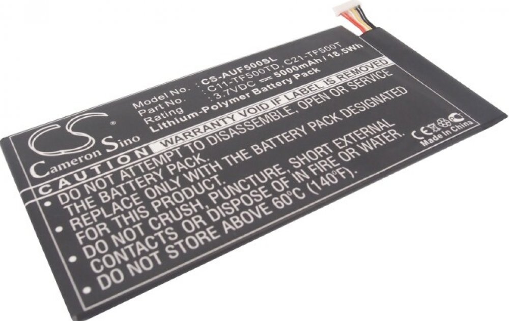 Napětí 3.7 V, typ Li-Polymer, barva černá, kapacita 5000 mAh, váha netto 97.6 g, váha brutto 147.6 g, výkon 18.5 Wh. EE Pad TF500, TF500D, Transformer Pad TF500, Transformer Pad TF500D, Transformer Pad TF500T. C11-TF500CD, C11-TF500TD, C21-TF500T