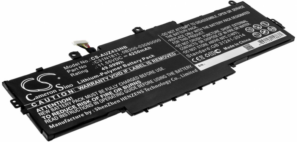 Váha netto 194.4 g, výkon 49.09 Wh, kapacita 4250 mAh, váha brutto 454.4 g, napětí 11.55 V, barva černá, typ Li-Polymer. BX433FN, Deluxe 13, Deluxe14, RX433FN, U4300, U4300F, U4300FA, U4300FN, UX433, UX433FA, UX433FA-2B, UX433FA-2S, UX433FA-3B, UX433FA-3S, UX433FN, UX433FN-0032B8565U, UX433FN-0072B8565U, UX433FN-0082B8265U, UX433FN-0092S8265U, UX433FN-0112S8565U, UX433FN-0152B8565U, UX433FN-0162B8265U, UX433FN-0172S8265U, UX433FN-0232S8565U, UX433FN-2B, UX433FN-2S, UX433FN-3B, UX433FN-3S, UX433FN-IH74, ZenBook 14 UX433, ZenBook 14 UX433F, ZenBook 14 UX433FA, ZenBook 14 UX433FA-A5045R, ZenBook 14 UX433FA-A5045T, ZenBook 14 UX433FA-A5046R, ZenBook 14 UX433FA-A5047R, ZenBook 14 UX433FA-A5054T, ZenBook 14 UX433FA-A5070T, ZenBook 14 UX433FA-A5082T, ZenBook 14 UX433FA-A5090T, ZenBook 14 UX433FA-A5104R, ZenBook 14 UX433FA-A5128T, ZenBook 14 UX433FA-A5133T, ZenBook 14 UX433FA-A5143T, ZenBook 14 UX433FA-A5155R, ZenBook 14 UX433FA-A5155T, ZenBook 14 UX433FA-A5156T, ZenBook 14 UX433FA-A5187R, ZenBook 14 UX433FA-A5188R, ZenBook 14 UX433FA-A5854T, ZenBook 14 UX433FA-A5941T, Zenbook 14 UX433FA-A6018T, ZenBook 14 UX433FA-A6019R, ZenBook 14 UX433FA-A6024T, ZenBook 14 UX433FA-A6025T, ZenBook 14 UX433FA-A6043T, ZenBook 14 UX433FA-A6101T, ZenBook 14 UX433FA-A6102T, ZenBook 14 UX433FA-A6116T, ZenBook 14 UX433FA-A6148R, ZenBook 14 UX433FA-A6688T, ZenBook 14 UX433FA-DH74, ZenBook 14 UX433FA-XH54, Zenbook 14 UX433FN, Zenbook 14 UX433FN-A5001T, ZENBOOK 14 UX433FN-A5021R, ZenBook 14 UX433FN-A5021T, ZenBook 14 UX433FN-A5028TS, ZenBook 14 UX433FN-A5037T, ZenBook 14 UX433FN-A5042T, ZenBook 14 UX433FN-A5044T, ZenBook 14 UX433FN-A5047T, Zenbook 14 UX433FN-A5048T, Zenbook 14 UX433FN-A5050T, ZenBook 14 UX433FN-A5069T, ZenBook 14 UX433FN-A5072T, Zenbook 14 UX433FN-A5073T, ZenBook 14 UX433FN-A5079T, ZenBook 14 UX433FN-A5080T, ZenBook 14 UX433FN-A5085T, ZenBook 14 UX433FN-A5104R, Zenbook 14 UX433FN-A5104T, ZenBook 14 UX433FN-A5110R, Zenbook 14 UX433FN-A5214TS, Zenbook 14 UX433FN-A5232T, ZenBook 14 UX433FN-A5312R, ZenBook 14 UX433FN-A5822T, Zenbook 14 UX433FN-A6014T, Zenbook 14 UX433FN-A6023T, Zenbook 14 UX433FN-A6024T, ZenBook 14 UX433FN-A6032T, Zenbook 14 UX433FN-A6034T, ZenBook 14 UX433FN-A6039T, ZenBook 14 UX433FN-A6051T, ZenBook 14 UX433FN-A6052T, Zenbook 14 UX433FN-A6074T, ZenBook 14 UX433FN-A6090T, Zenbook 14 UX433FN-A6094T, ZenBook 14 UX433FN-A6096T, Zenbook 14 UX433FN-A6106T, ZenBook 14 UX433FN-A6108T, ZenBook 14 UX433FN-A6113T, ZenBook 14 UX433FN-A6123T, ZenBook 14 UX433FN-A6125T, ZenBook 14 UX433FN-A6145T, ZenBook 14 UX433FN-A6157T, Zenbook 14 UX433FN-A6532T, Zenbook 14 UX433FN-A6782T, ZenBook 14 UX433FN-BP8201T, ZenBook 14 UX433FN-BP8505T, Zenbook 14 UX433FN-N5240T, ZenBook 14 X433FN-A5104T, Zenbook U433FN, Zenbook UX433, Zenbook UX433FA, ZenBook UX433FL, ZenBook UX433FN, ZenBook14 UX433FN-A5084T. 0B200-03080000, C31N1811